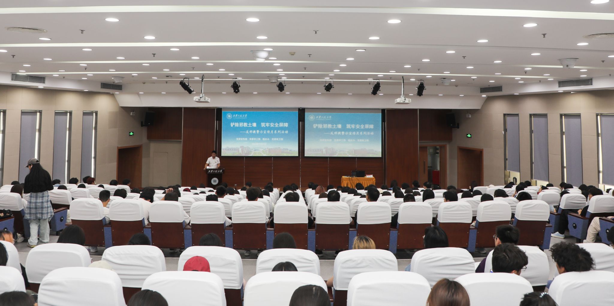 2024年是习近平总书记提出总体国家安全观10周年,9月27日下午,必赢官网邀请西安市公安局碑林分局一级警长吕欣以《铲除邪教土壤 筑牢安全屏障》为题,作反邪教知识讲座,进一步贯彻落实习近平总书记关于维护国家安全工作的重要指示批示精神,巩固夯实反邪教防线,增强全体师生自觉抵制邪教的法治意识和辨识能力。党委宣传部、党委学工部、党委保卫部、稳定办等单位负责人,师生代表200余人参会,党委保卫部部长潘光辉主持讲座。