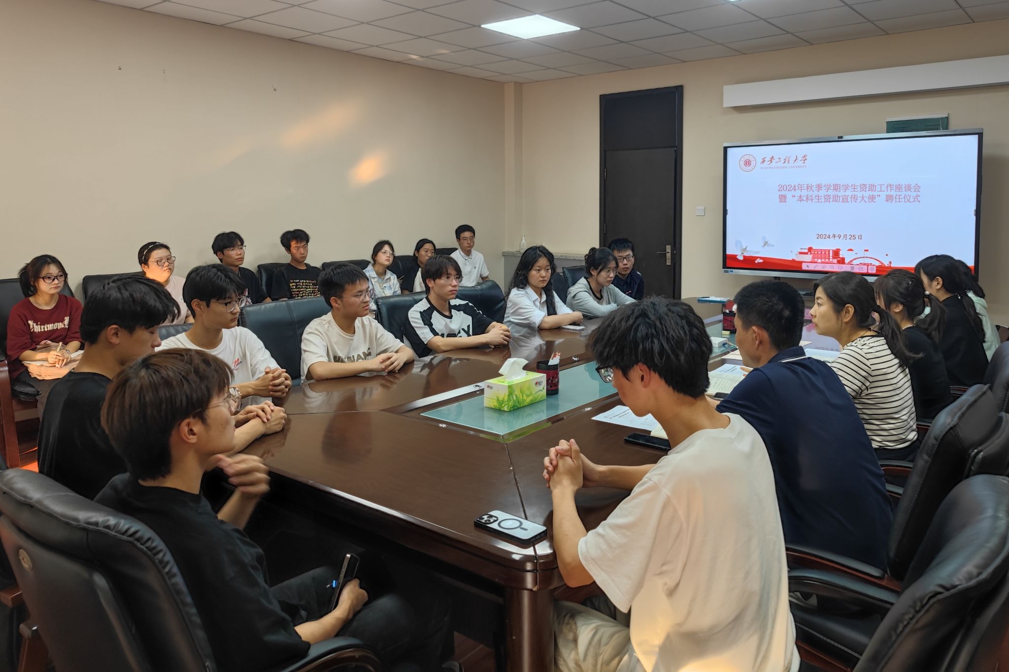 9月25日,学生工作部(处)资助中心在临潼校区行政楼220会议室举办2024年秋季学期学生资助工作座谈会暨“本科生资助宣传大使”聘任仪式,学生工作部(处)副部长李路瑶,学生资助中心主任朱成功、华宁,全体本科生资助宣传大使、受助学生代表共同参与活动。