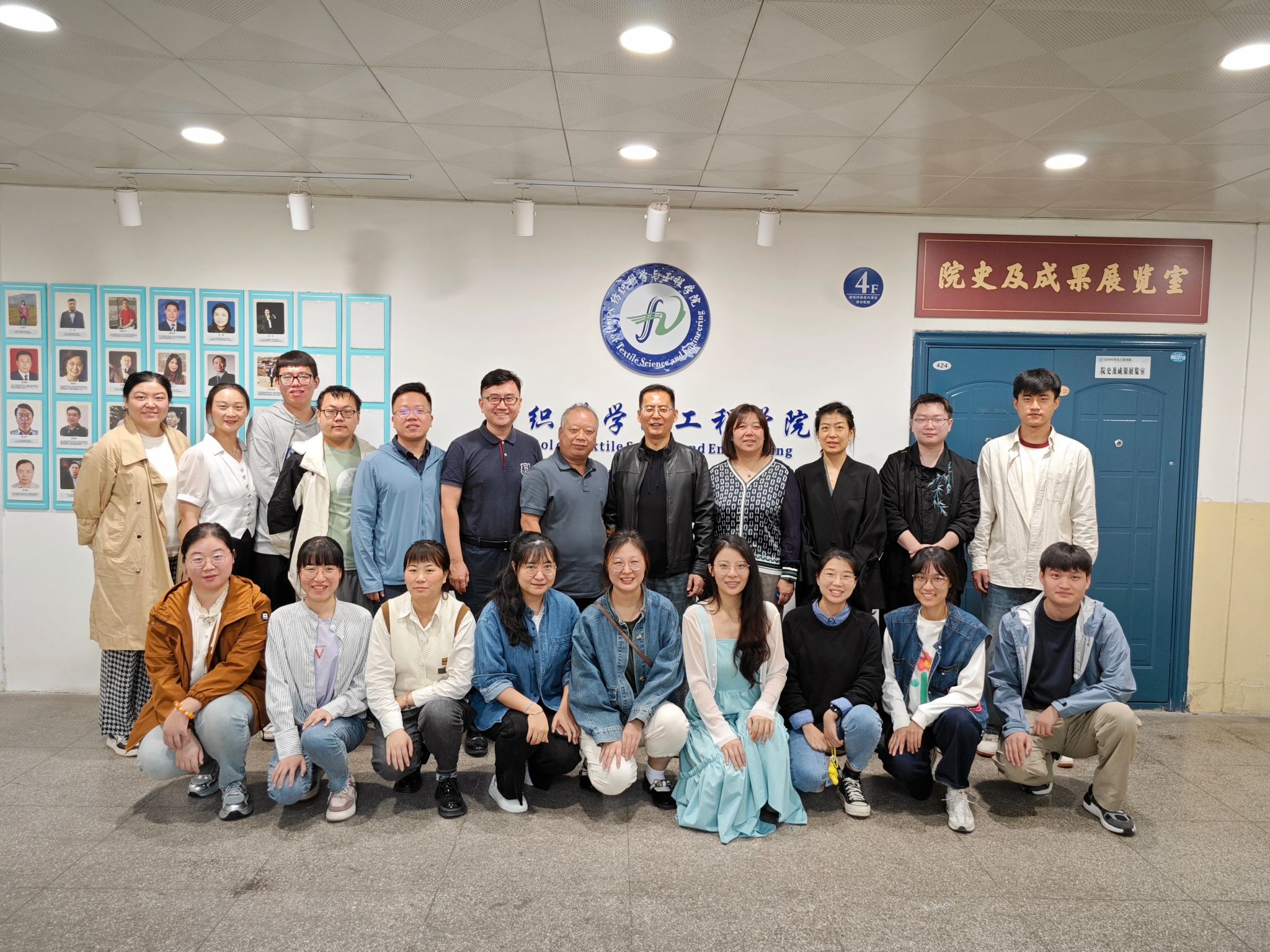 首先,孙润军带领博士参观院史馆,介绍院史院情。孙院长在讲解过程中融入了专业教育,介绍了研究生培养的历程,并着重介绍了优秀校友的事迹,给同学们指明科研方向,教授科研方法,他强调读纺织原著的重要性,要求大家做好博士期间的学习科研规划,争取科研成果高产出。