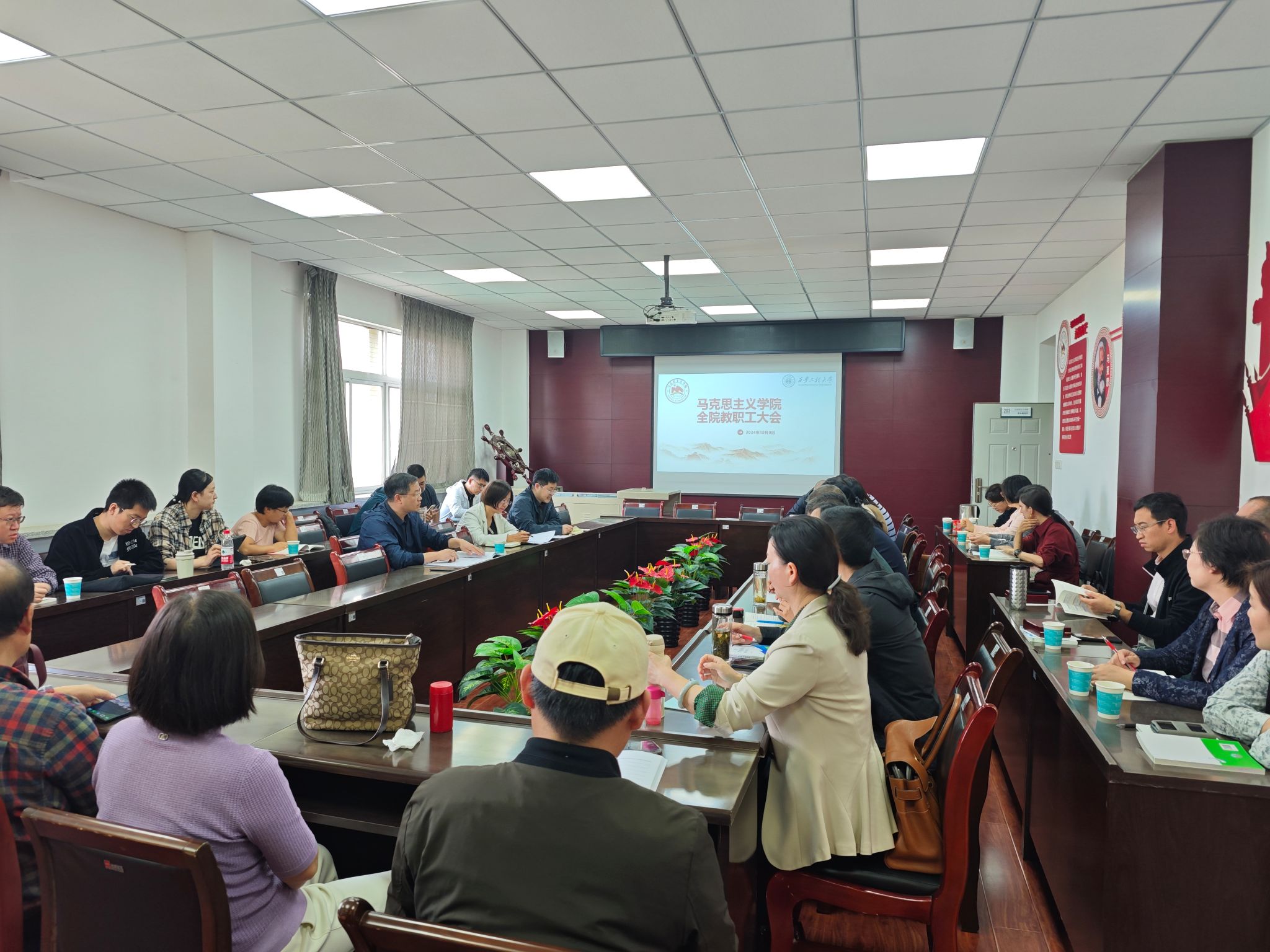 10月9日,马克思主义学院召开全体教职工大会,就近期重点工作进行安排部署。会议由学院副院长郭松主持。