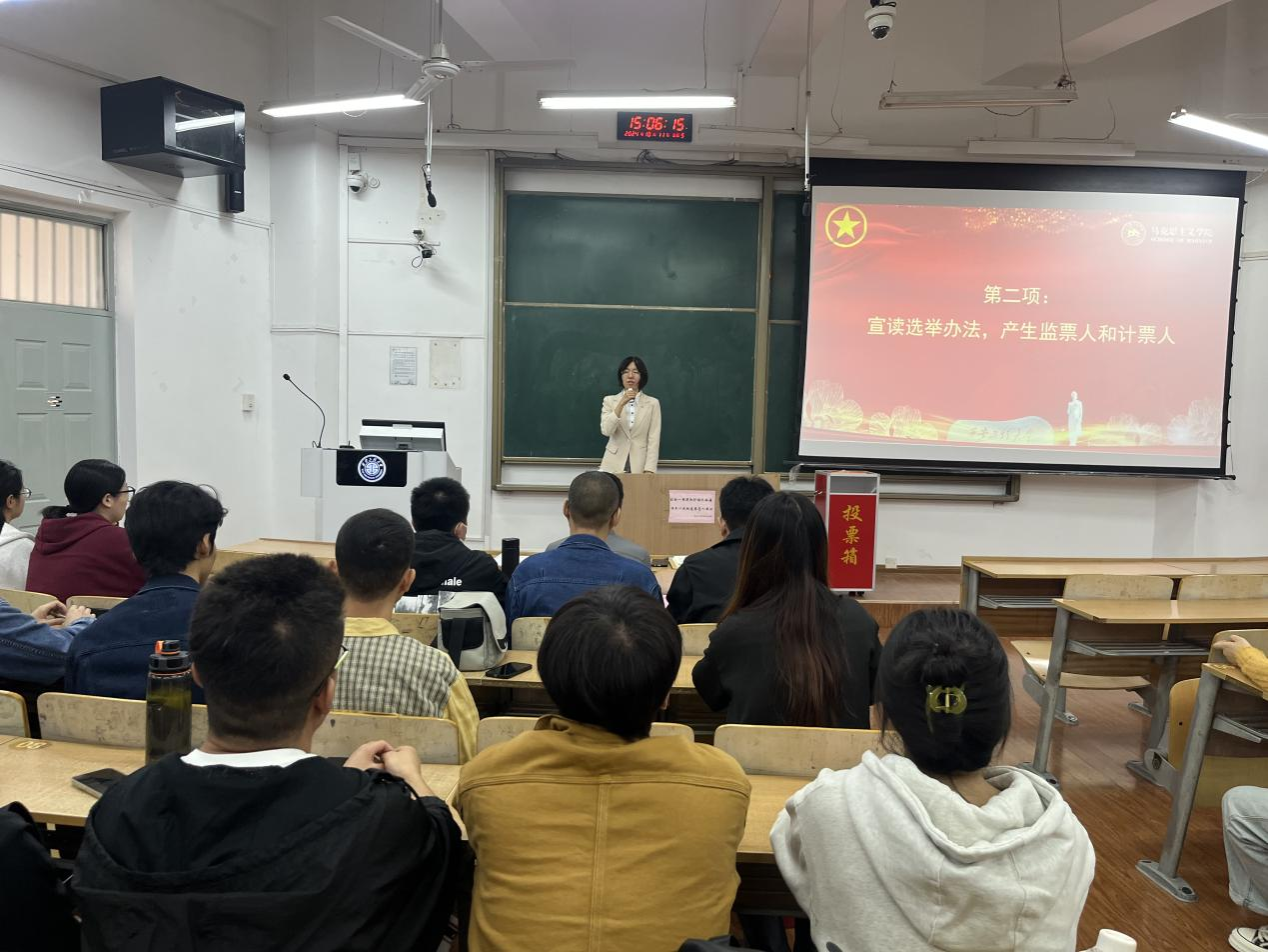 10月11日,马克思主义学院在临潼校区B-235教室召开共青团必赢优惠y272net第四次代表大会暨必赢优惠y272net第六次学生代表大会和第四次研究生代表大会马克思主义学院代表选举大会。学院党委副书记(主持工作)傅博娜、习近平新时代中国特色社会主义思想概论教研室李斌副教授和学院全体研究生参加了会议。会议由学院学工办主任梁育主持。