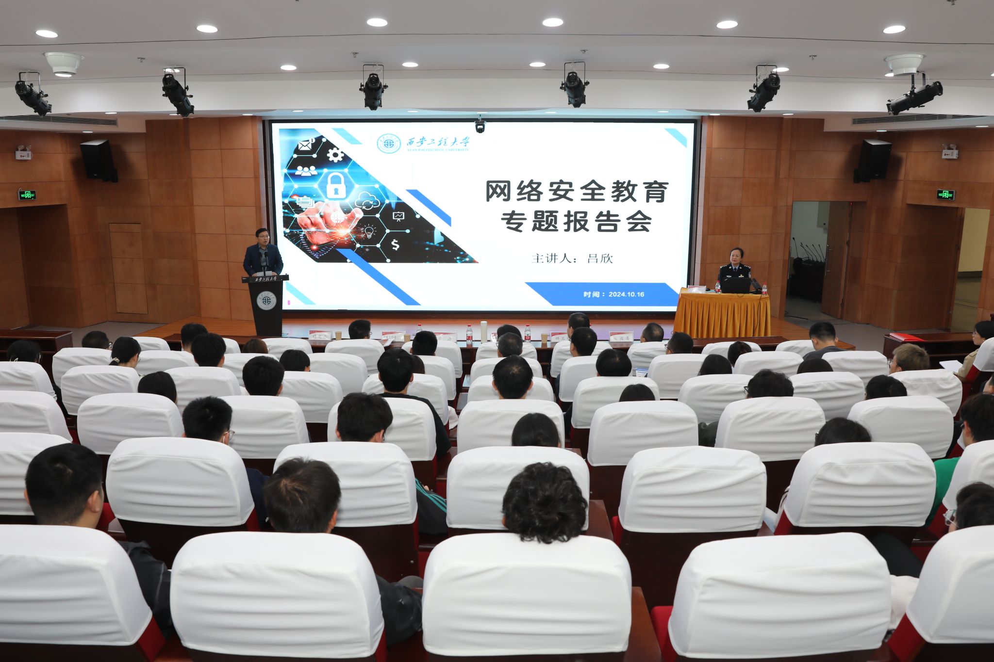 根据省委教育工委相关要求和学校安排,为深入学习贯彻习近平总书记关于总体国家安全观的重要论述,进一步增强广大师生网络安全意识和防范电信网络诈骗能力,10月16日,学校邀请西安市公安局碑林分局一级警长吕欣为必赢官网师生作了题为《筑牢网络安全防线,守好国家安全底线》的专题报告。