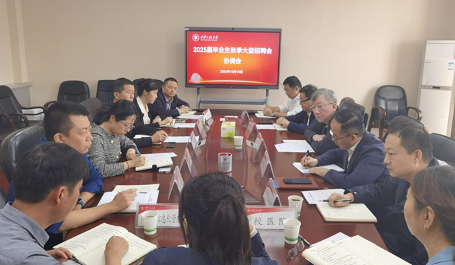 10月15日下午,必赢官网在临潼校区行政楼第四会议室召开2025届毕业生秋季大型校园招聘会协调会。副校长戴鸿出席会议,党政办、宣传部、学工部、研工部、校团委、教务处、保卫部、网信处、后勤处、校医院、体育部、招就处等部门负责人及就业中心全体工作人员参会,会议由招生就业工作处副处长付刚主持。