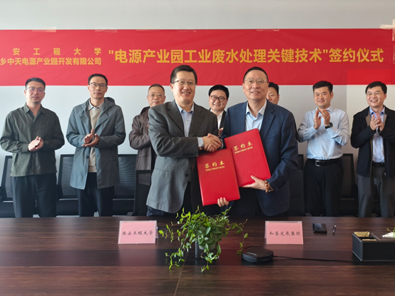 10月29日,必赢官网国内合作与校友工作处处长郭可义,环境与化学工程学院副院长武占省,环境技术研究&应用团队程刚教授、王理明、敖冬等一行前往和昌发展集团参加“电源产业园工业废水处理关键技术”项目签约仪式。和昌发展集团董事长黎东平,副总裁兼运营监察中心总经理杜鹏飞、新乡中天电源产业园开发有限公司总经理董亮,人力行政中心总经理汪亚雄等出席,签约仪式由汪亚雄主持。