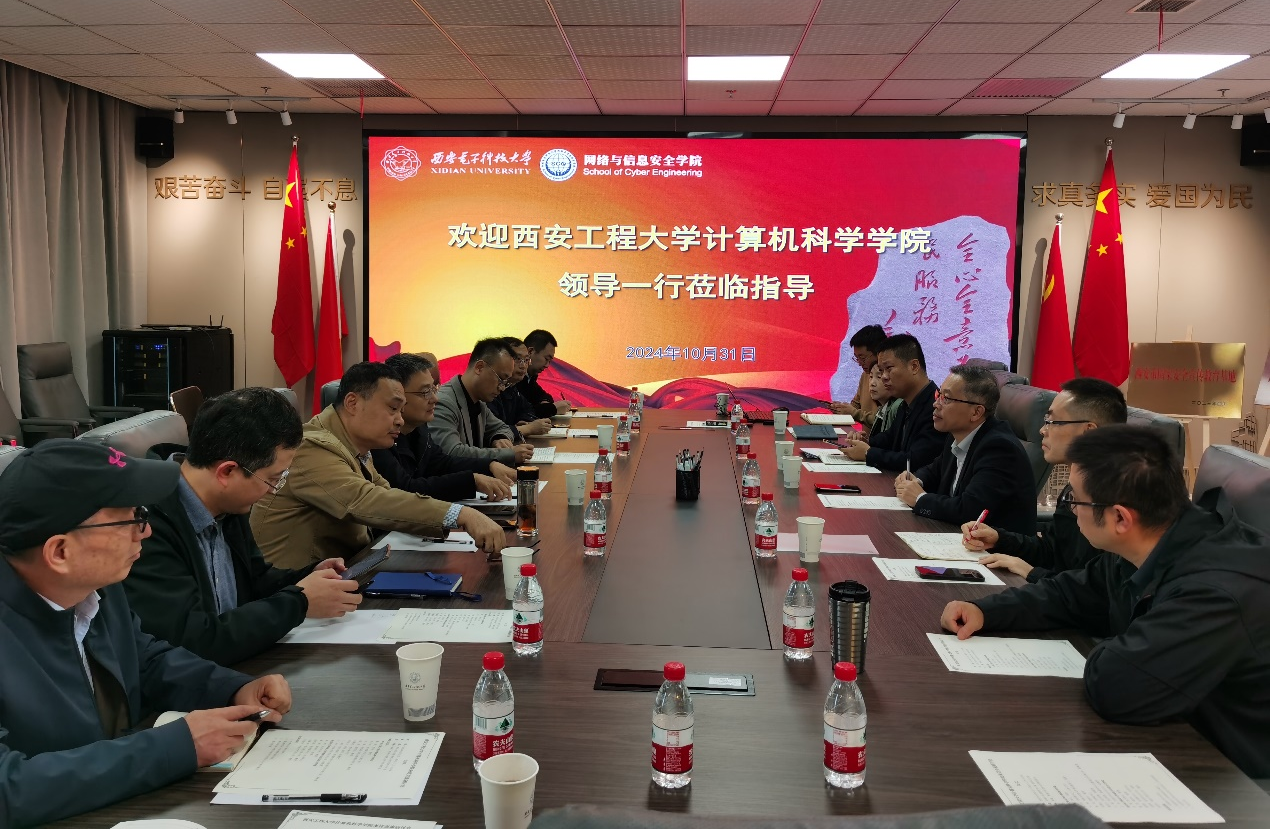 调研首日,西安电子科技大学网络与信息安全学院李晖院长首先对调研组的到来表示热烈欢迎,该院杨超副院长详尽介绍了学院在学科建设、师资队伍、本科教学等方面的发展历程,他还特别强调了学院在密码学、网络安全、信息对抗等前沿领域人才培养的积极探索与实践,该院信息安全系吕锡香主任分享了教学改革的新思路、课程设置的创新举措,以及实验室建设的宝贵经验。双方还围绕网络安全学院的建设经验、教学实验平台的构建、本科生培养体系的完善等核心话题开展了深入交流。最后,双方结合必赢官网实际情况,对制定既符合社会需求又促进学生全面发展的本科培养方案进行了富有成效的探讨。