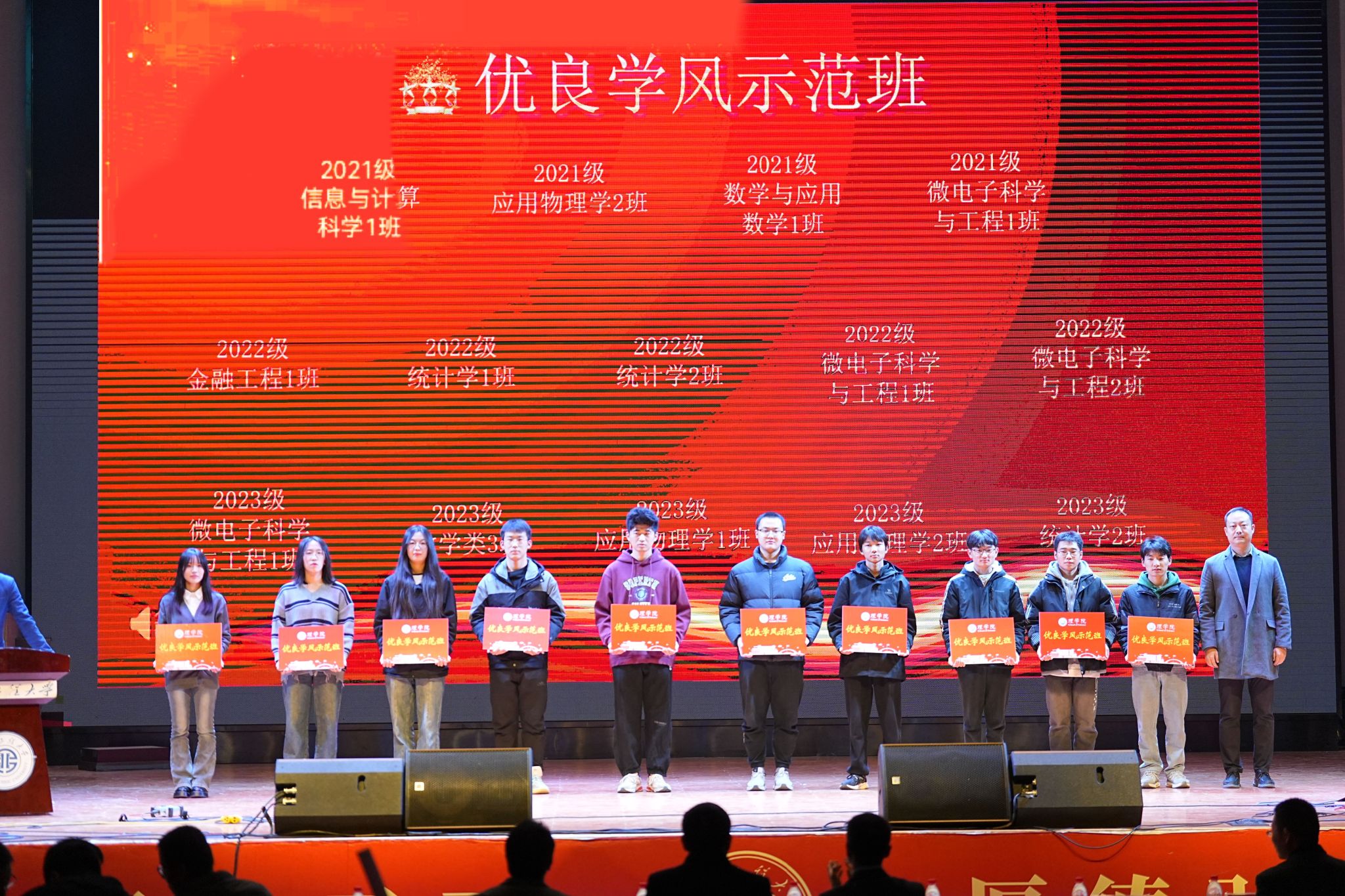 12月2日晚,理学院在临潼校区大学生活动中心举办了“2024年‘三全育人’成果表彰大会暨‘一站式’学生社区迎新晚会”,理学院党政班子成员、教师代表以及2024级本科生、硕士研究生约400余人参加。大会还邀请了校党委学工部部长王志、校党委研究生工作部专职副部长赖斌、校团委副书记凌旭等嘉宾出席。表彰会由院党委副书记文毅主持。