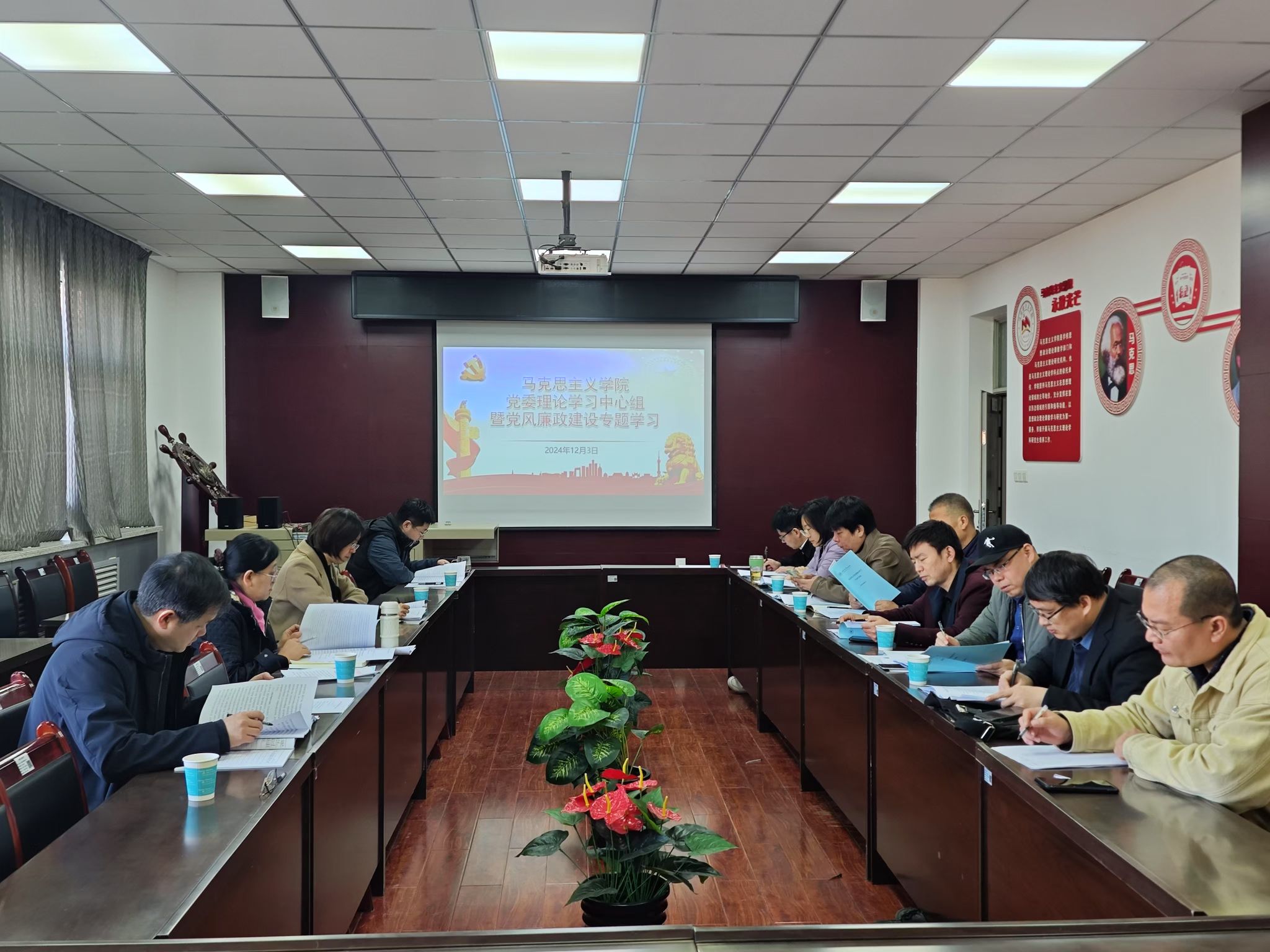 副院长郭松带领大家集体学习了中共中央总书记、国家主席、中央军委主席习近平近日对新时代马克思主义理论研究和建设工程作出重要指示,扎根中国大地赓续中华文脉厚植学术根基,为推进马克思主义中国化时代化作出更大贡献。郭松强调,全院师生要落实好重要指示精神,结合学院工作实际,持续做好学习贯彻习近平新时代中国特色社会主义思想的深化、内化、转化工作,培养高素质理论人才。随后他领学了党的二十届中央纪律检查委员会第三次全体会议公报,强调要对标推进自我革命“九个以”实践要求,持续发力、纵深推进反腐败斗争。
