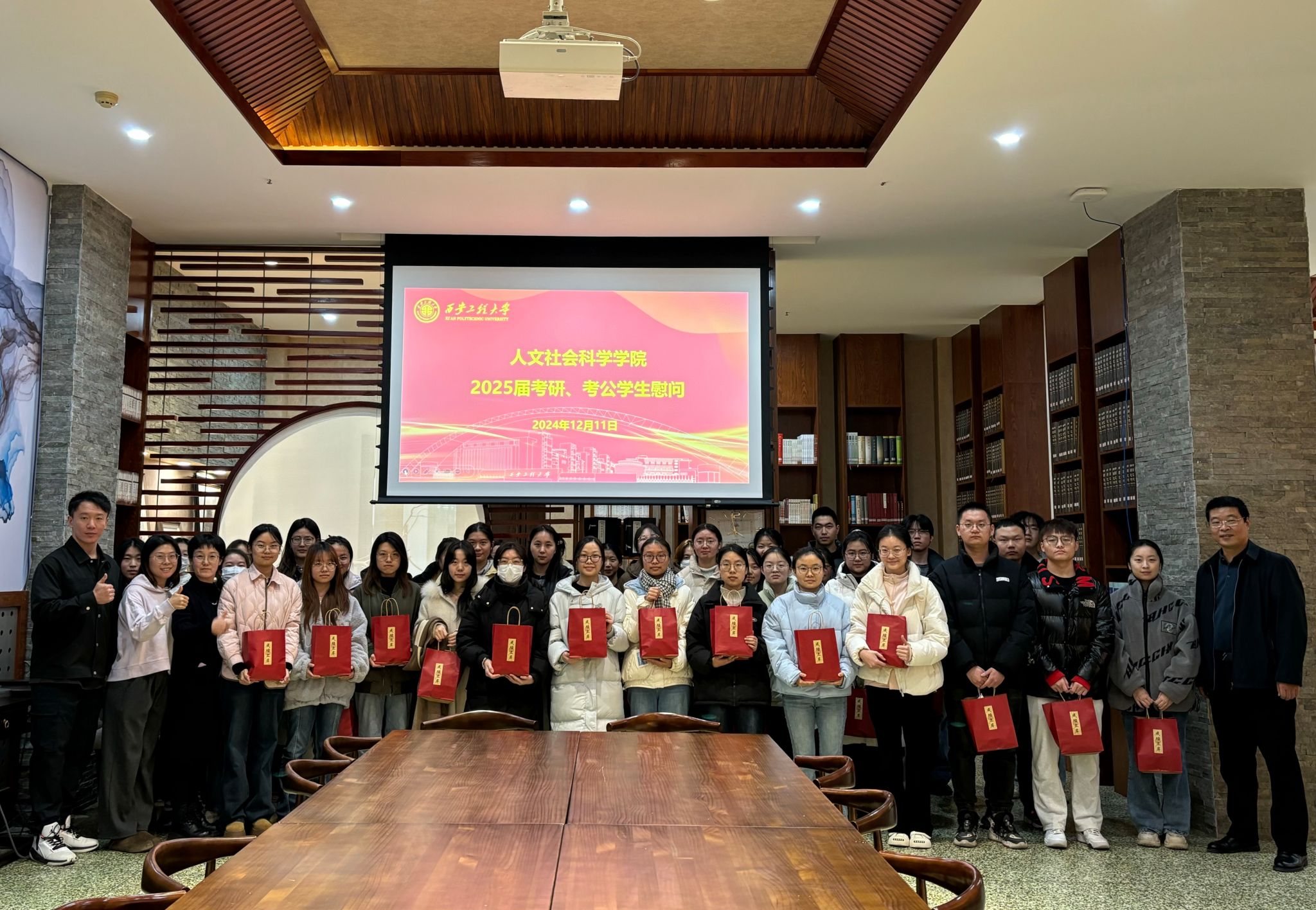 12月12日,人文社会科学学院党委副书记赵立涛及全体辅导员在临潼校区骊山书院慰问了2025届全体考研、考公学生,为同学们送去温暖与关怀。