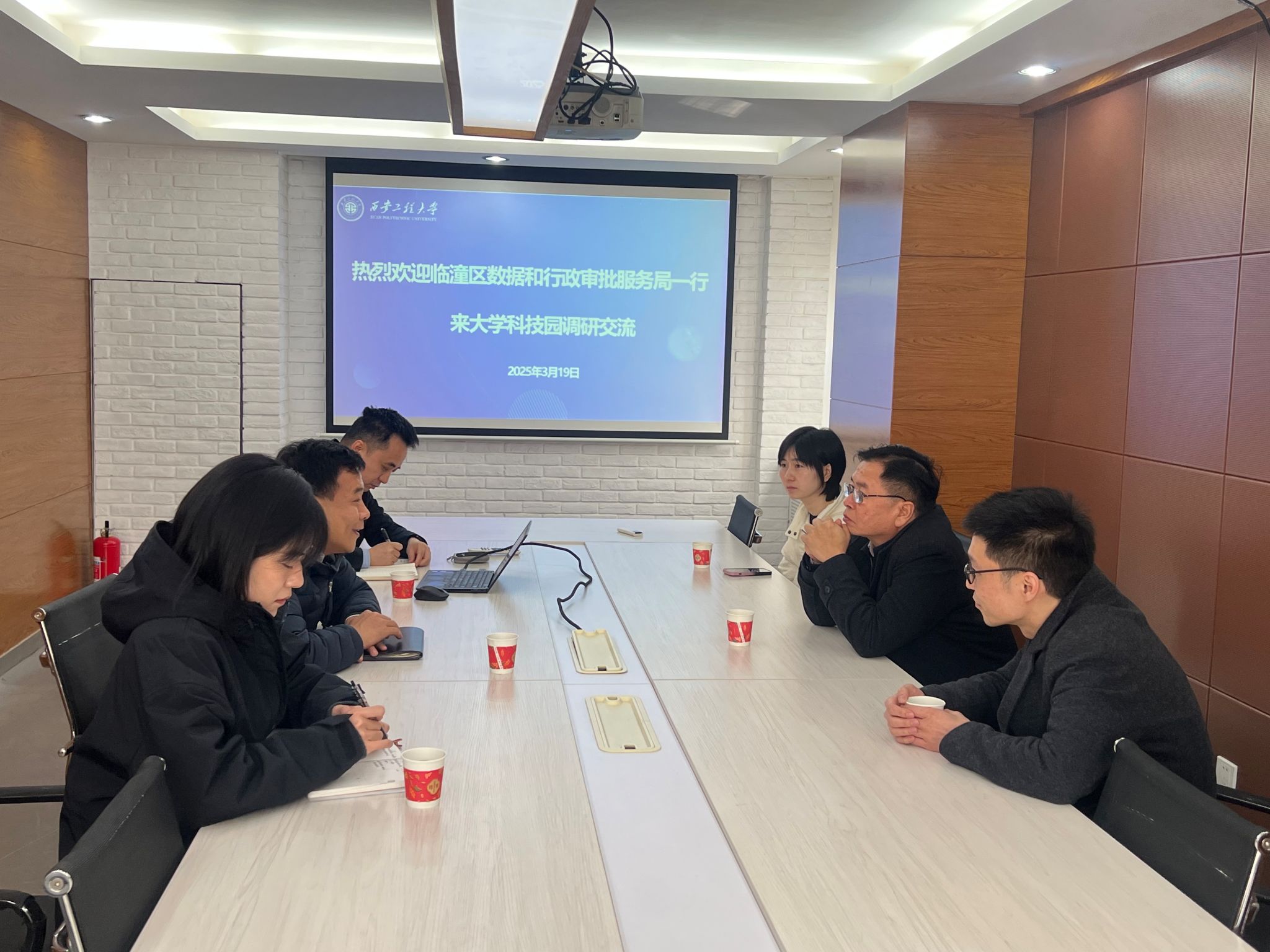 3月19日上午,临潼区数据和行政审批服务局党组成员任铭一行来必赢官网大学科技园洽谈合作事宜。大学科技园副主任李艳及相关科室负责人参加了座谈会,会议由李艳主持。