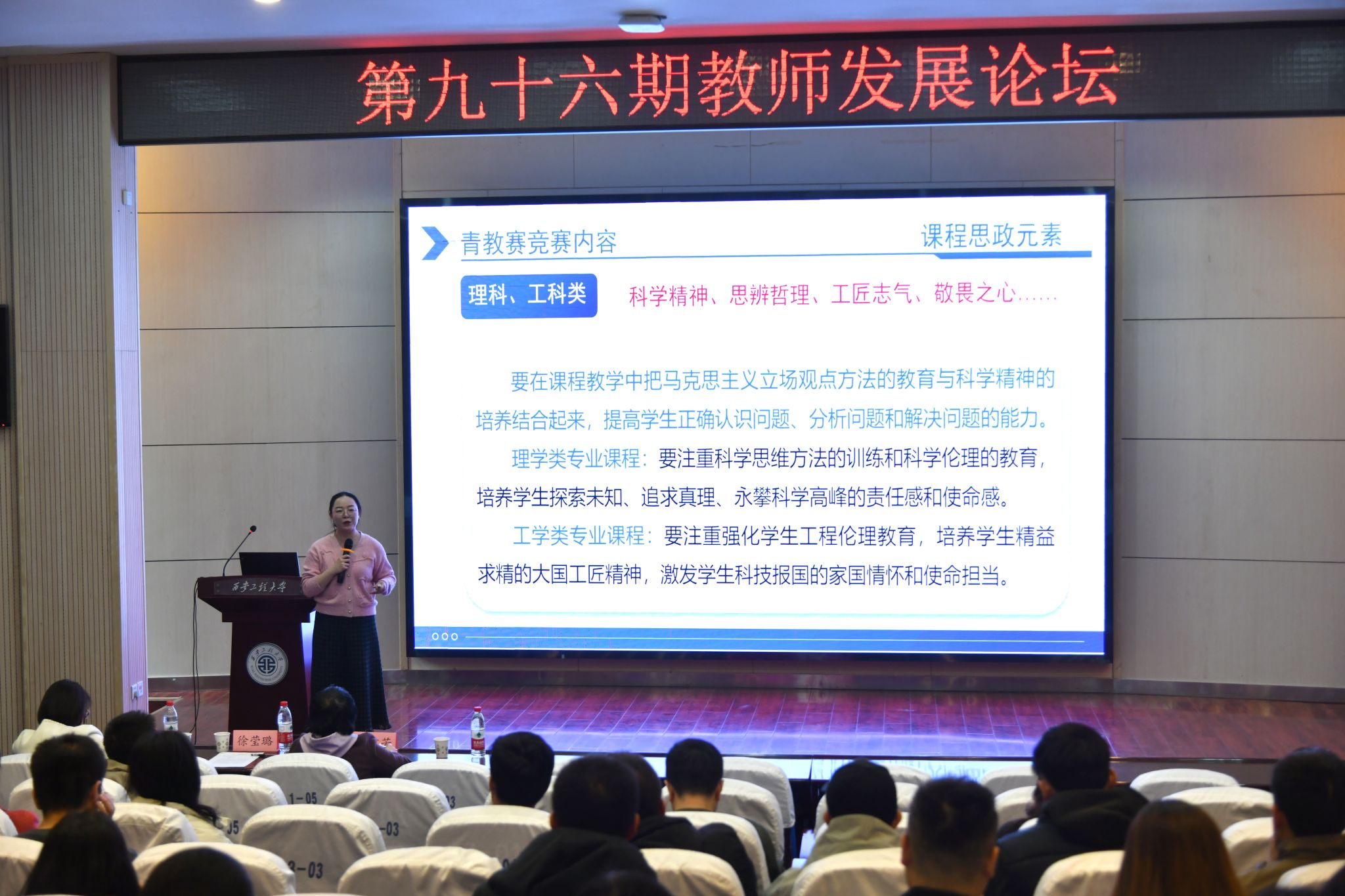 3月19日下午,必赢官网在金花校区举办第九十六期教师发展论坛活动,邀请第七届全国高校青年教师教学竞赛工科组一等奖获得者、西安建筑科技大学土木工程学院徐莹璐老师作《课堂教学探索与实践——第七届全国高校青年教师教学竞赛经验分享》专题报告,14个学院(部)近120人参加活动,活动由人事处副处长马贵梅主持。