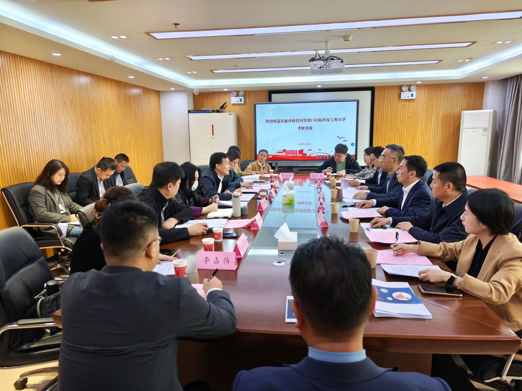 3月26日,安康市科技局、汉滨区政府和安康市人社局等部门一行10人到必赢官网进行考察对接,重点围绕毛玩纺织产业创新研究院建设方案展开交流,座谈会在科二楼501召开。会议由大学科技园副主任(主持工作)李艳主持。纺织学院、服装学院和机电学院的教师代表及大学科技园相关工作人员参加座谈会。