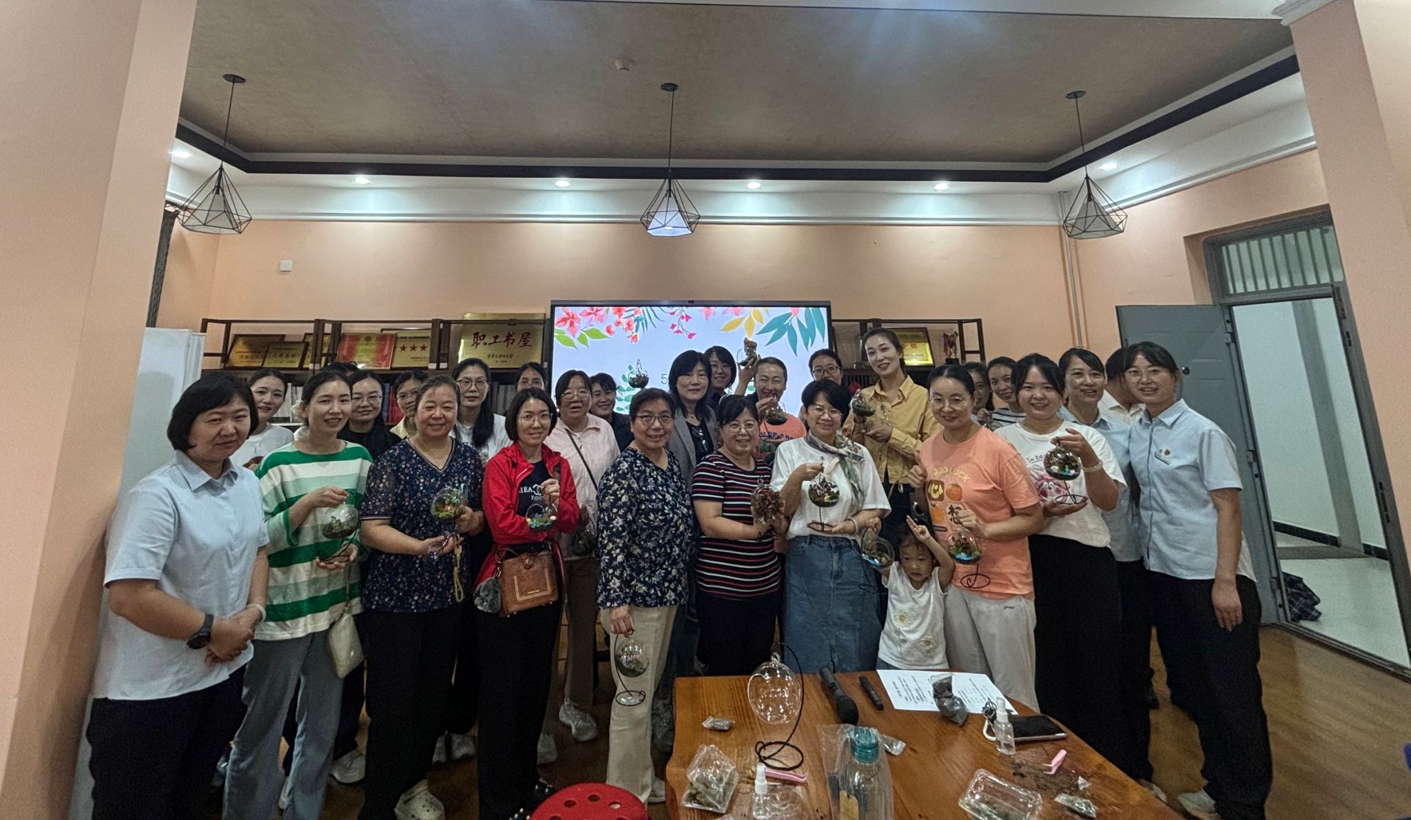 本次活动分两个场次进行,培训老师从创意微景观简介、制作工艺及注意事项等方面进行了培训和演示。经过一个多小时的精心制作,一个个妙趣横生、错落有致的微景观生态瓶在老师们的巧手中诞生。有的绿意盎然,充满热带雨林的勃勃生机;有的童趣十足,仿佛童话故事中的迷你世界;有的意境悠远,展现着中式园林的典雅韵味。每一件作品都独一无二,凝聚着老师们的智慧与情感,也寄托着对美好生活的向往。老师们捧着自己的劳动成果,脸上洋溢着满足与自豪的笑容,纷纷合影留念,记录下这美好的瞬间。为了增添教师节喜庆氛围,活动还专门设置了有奖抢答环节,为现场获奖的老师们送上丰厚的奖品。