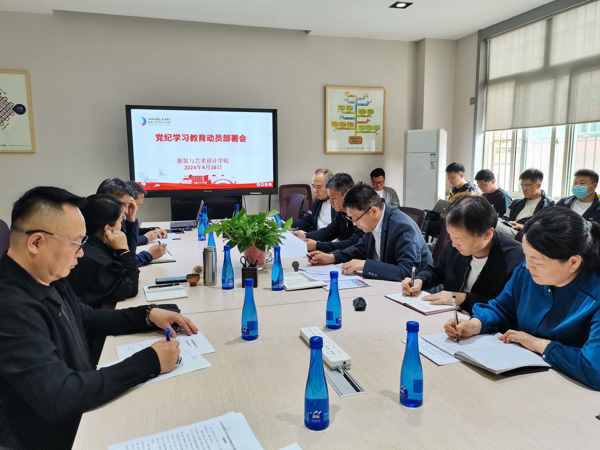 4月16日上午,服装与艺术设计学院在学院楼三楼会议室召开院党委扩大会,对党纪学习教育进行动员部署。会议由院党委书记苏博主持,院党委班子成员、院党委理论学习中心组成员、全体党支部书记参加了会议。