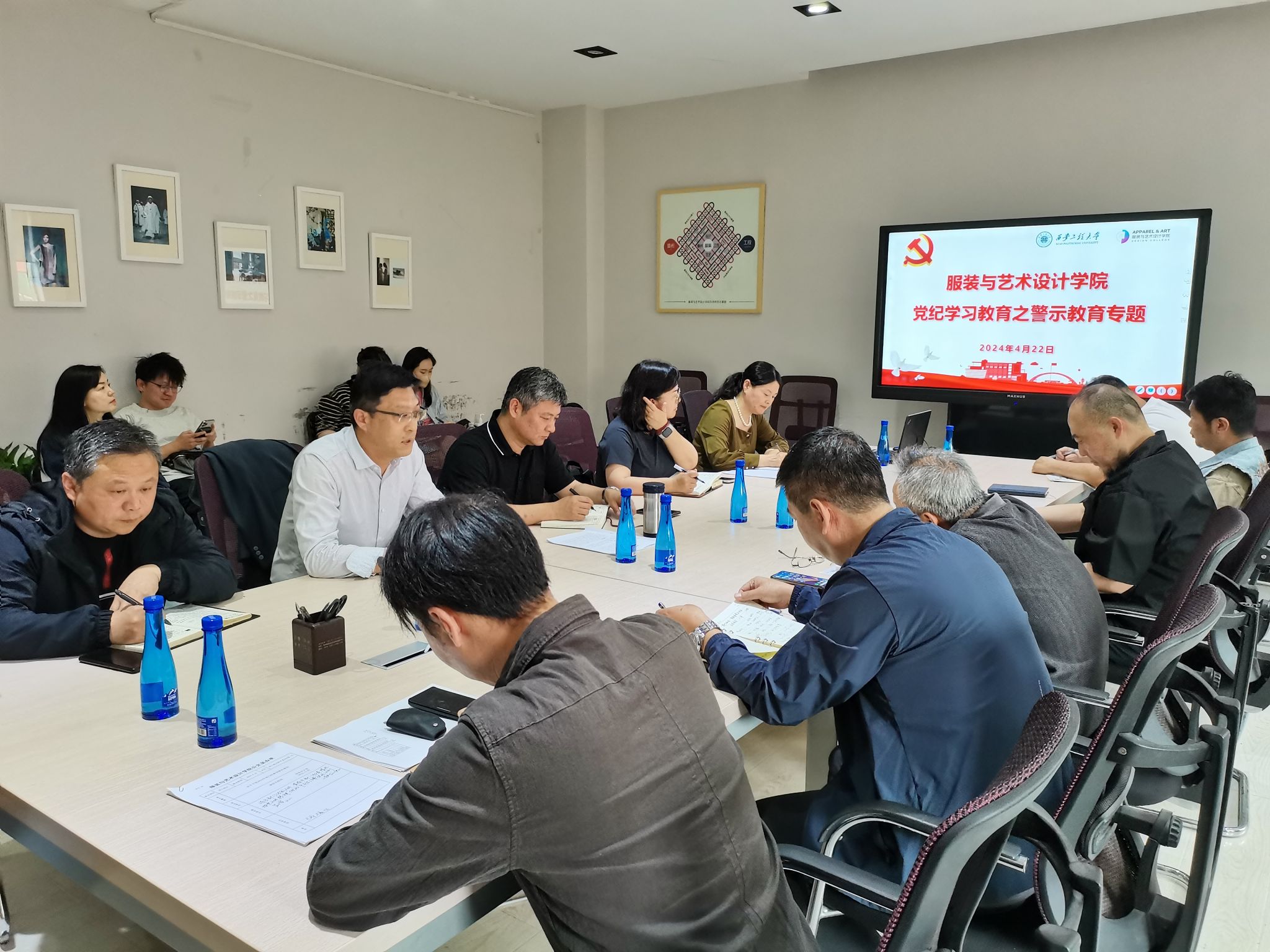 4月22日下午,服装与艺术设计学院在学院三楼会议室召开党纪学习教育之警示教育专题会。会议由院党委书记苏博主持,学院班子成员、党委委员、各系办中心主任、院长助理、校友会秘书长等人员参加会议。