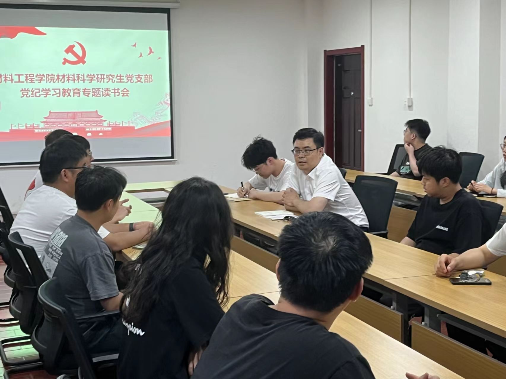 在组长的组织带领下,各小组合理安排学习时间,集中学习了《中国共产党章程》、《中国共产党纪律处分条例》等内容,并结合典型案例用身边人身边事开展警示教育,通过原原本本学、逐章逐条学,引导全体党员做到学纪、知纪、明纪、守纪。在研讨交流环节,师生党员结合岗位职责和工作实际,围绕在本科教育教学审核评估、实验室安全、教学科研能力提升、班级学风建设等重点工作中如何发挥党员示范引领作用开展交流讨论。党员们纷纷表示,读书班的学习使个人对党纪党规有了更深入的理解,对照工作也更明确了不足,找准了今后努力的方向。