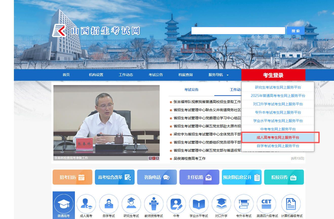搜索并进入山西招生考试网首页