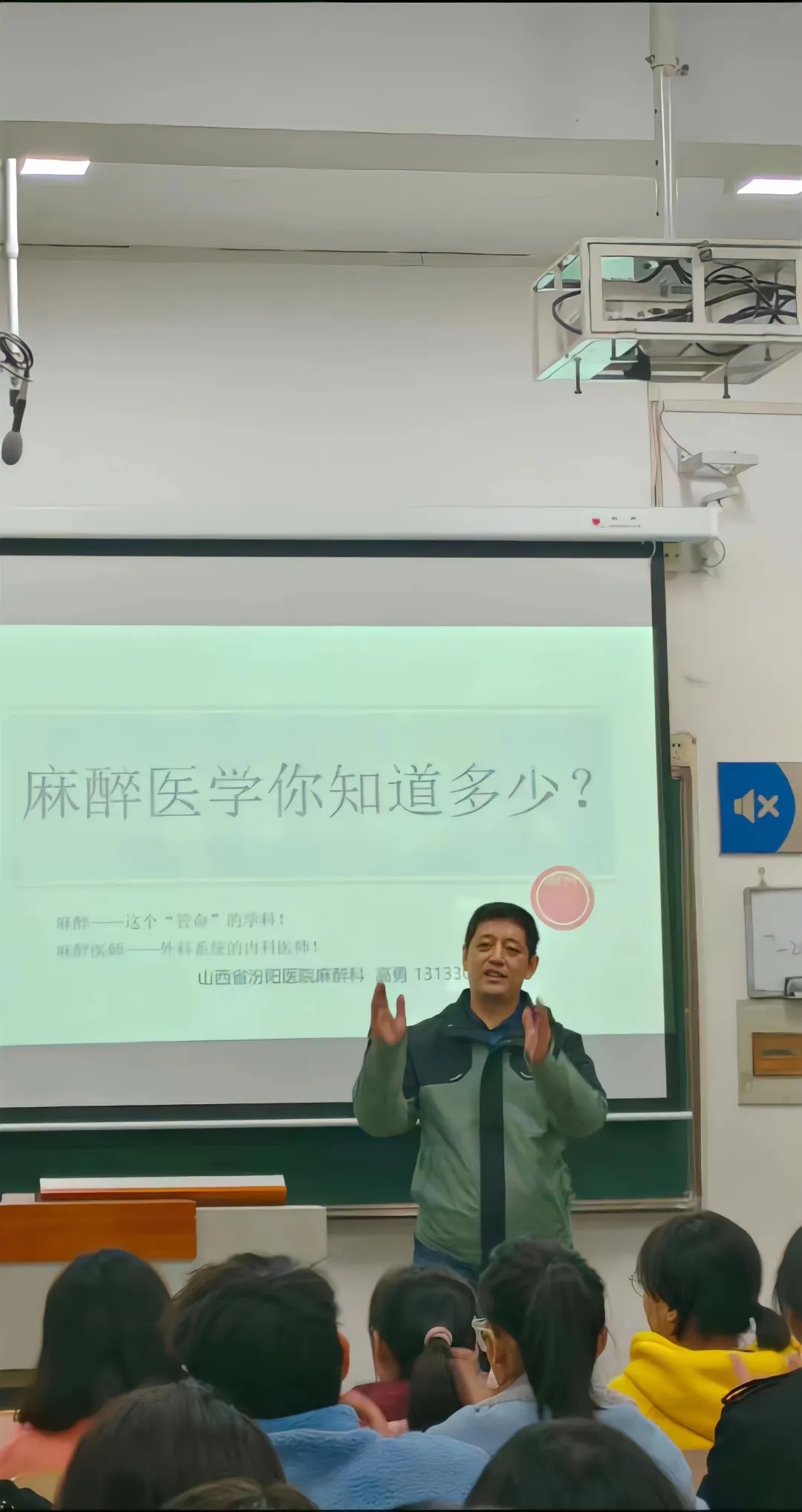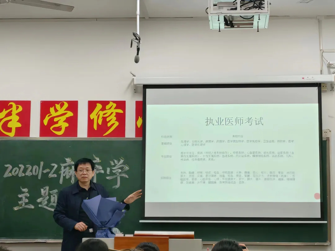 高勇主任以“麻醉医学你知道多少?”为主题,从“麻醉是什么”、“麻醉医师的工作范畴”及“麻醉专业学生的学业规划”三个方面,细致深刻为大家剖析麻醉医学。强调麻醉医学是“管命”的学科,希望同学们努力学习专业知识,刻苦钻研专业技能,并分享了麻醉医学专业课程及考研科目。最后以视频形式展示了麻醉就业现状及前景,激发了学生的专业认可度及学习积极性。