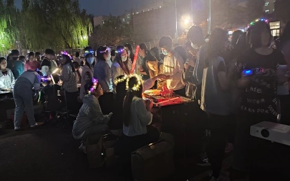 在新闻传媒中心各位成员的用心准备下,活动现场布置的十分梦幻,一串串气球挂在绿色网面上,点缀着漂亮的彩灯,还有泡泡在空中飞舞,在夜色中展现得无比浪漫。活动内容也十分有趣,最受欢迎的当属在明信片上写下自己的三行情书,用漂亮的丝带系在网面上,让心中的浓烈的情感在简练的语言中展现。许多同学还表达了对党,对国家的热爱,文笔优秀,情感真挚,令人感同身受。还有许愿瓶活动也十分有趣,同学们将自己的心中的愿望写在精美的便签纸上,在这个特殊的夜晚等待一份惊喜。有些同学还参与了点歌活动,美妙的歌声让这夜晚更添色彩。活动中场系舞团为大家准备了舞蹈,让现场气氛走向高潮,一片叫好声展现了大家的热情。最后的获奖者不仅获得了礼品还和我们的吉祥物拍照留念。活动落下帷幕,大家都带着今晚美好的回忆缓缓离场,开心又不舍。