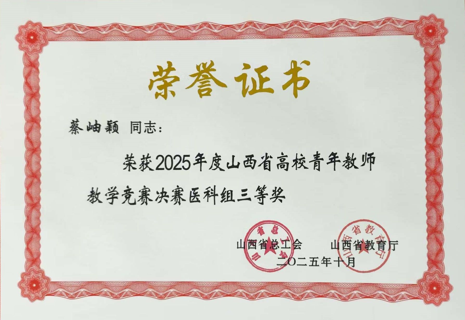 beat365教师蔡岫颖荣获2025年度山西省高校青年教师教学竞赛医科组三等奖