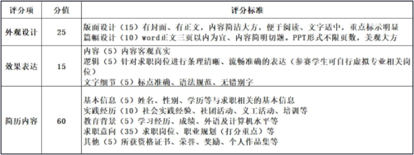 1、参赛者可以自定虚拟应聘单位职位,按照简历的标准格式设计。