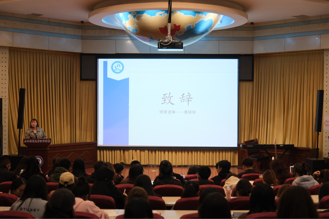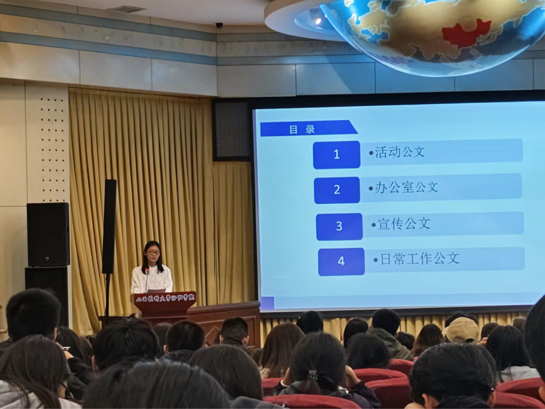 活动开始由团委美育教研室主任董婧妍发言,她强调了公文的重要性,提出了本次活动的目的,引导同学们共同学习公文写作,鼓励同学们在部门、社团中丰富自我,积极进步。