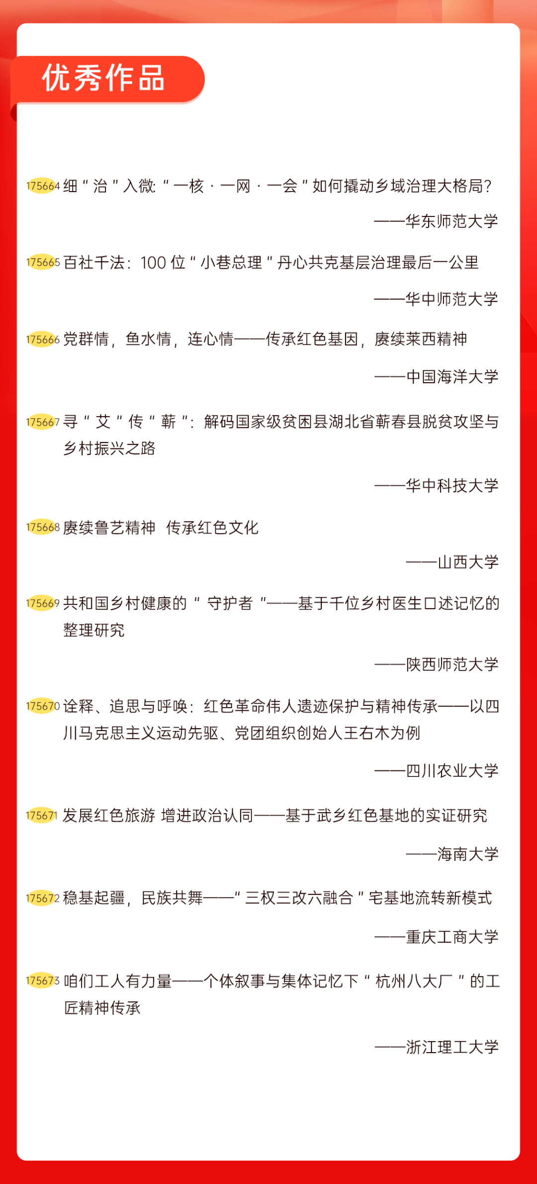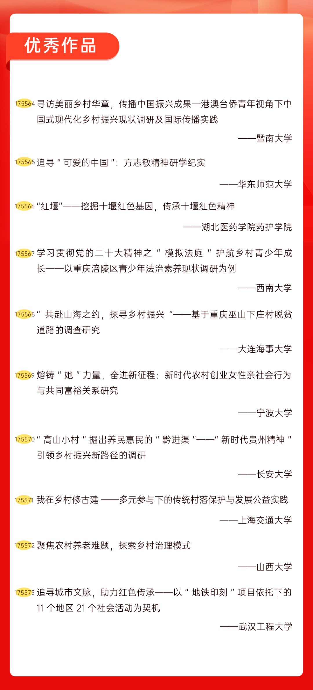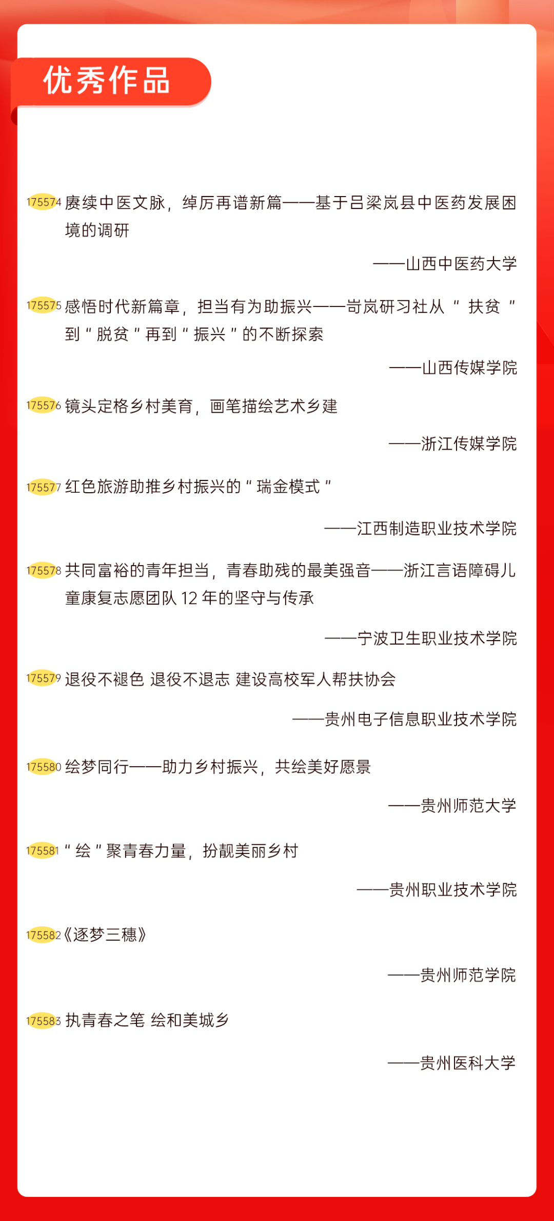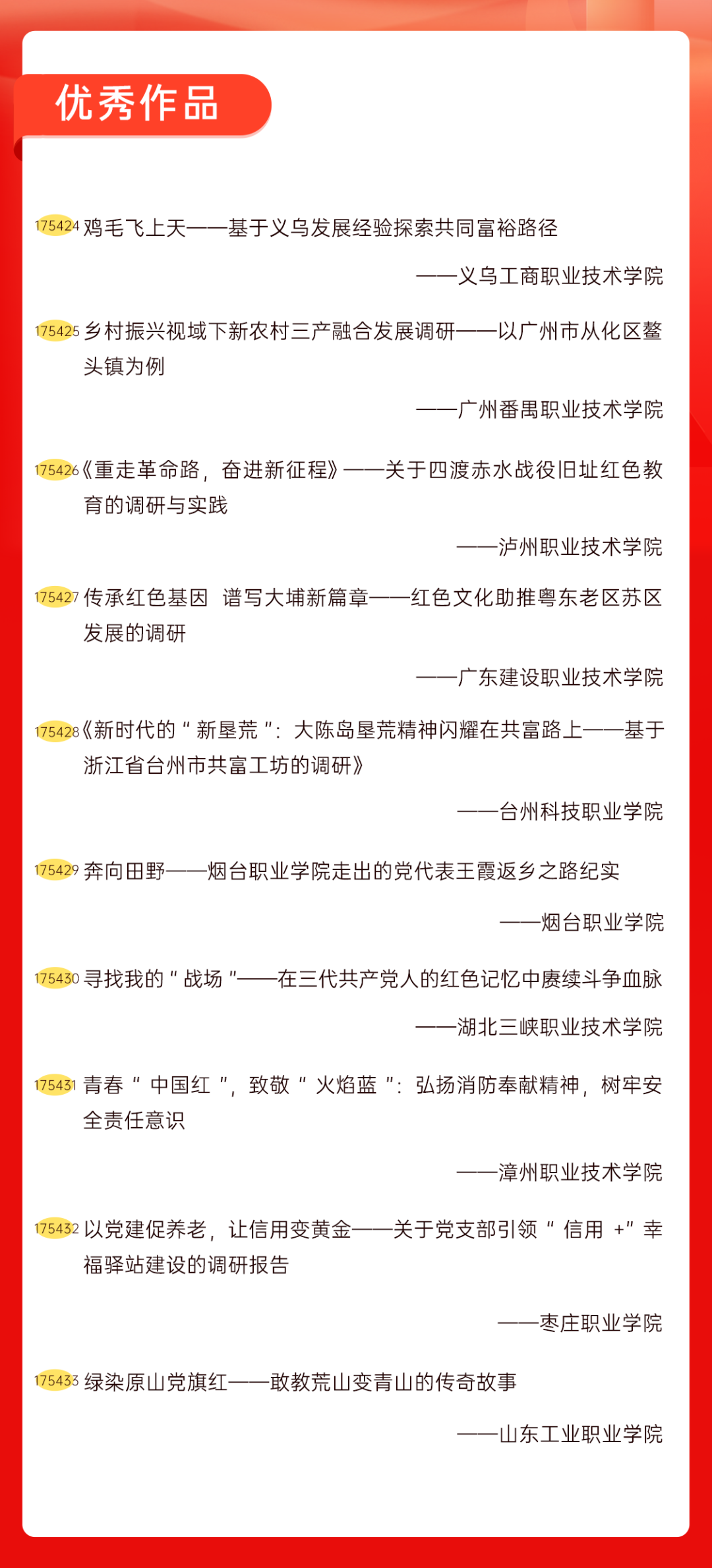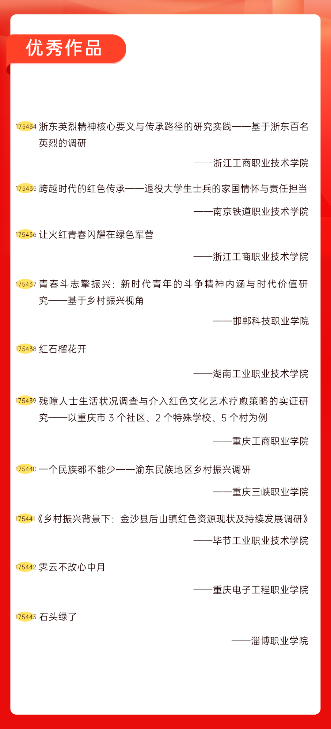 为增加广大青年互动式学习和交流,让青年学生的实践成果形成更广泛的社会影响,辐射带动更多青年学生突破空间限制、感受朋辈风采、传承红色基因,组委会将部分优秀作品建成红色教育的云上“红色课堂”。