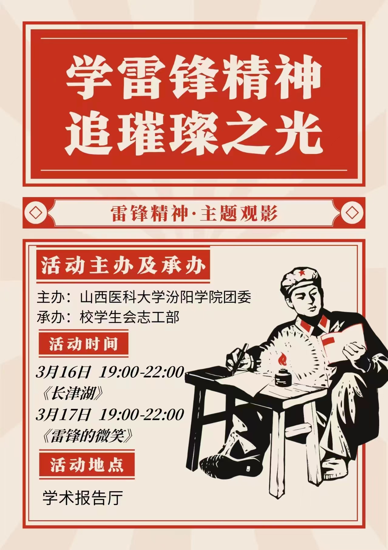为了深入学习和弘扬雷锋精神,同时回顾历史、铭记英雄,beat365校学生会志工部决定在雷锋月期间组织观影活动。本次观影将放映两部影片——《长津湖》和《雷锋的微笑》。