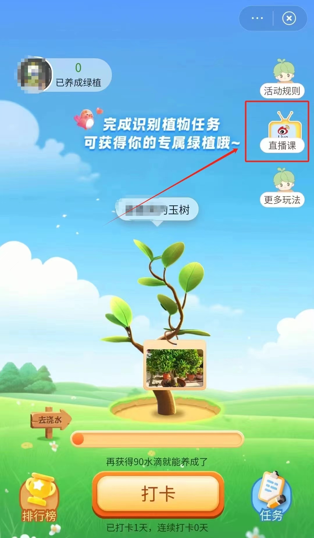 请各高校团委印发课程海报,组织团员青年用“微博”扫描海报上的二维码,进入“绿植领养”小程序,点击“直播课”按钮,准时观看由“共青团中央”官方微博账号发起的直播。