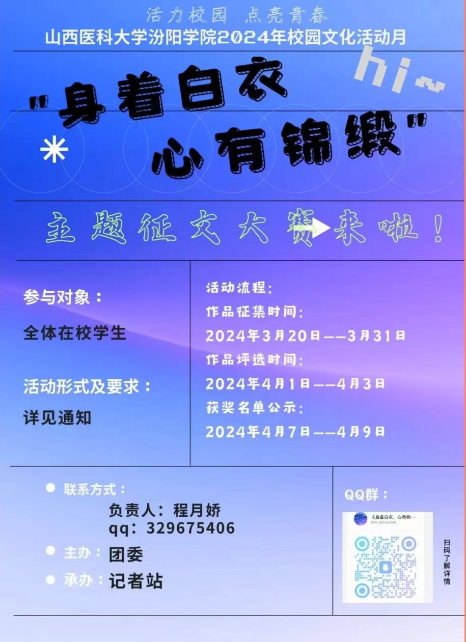 校园文化活动月|“身着白衣,心有锦缎”主题征文大赛