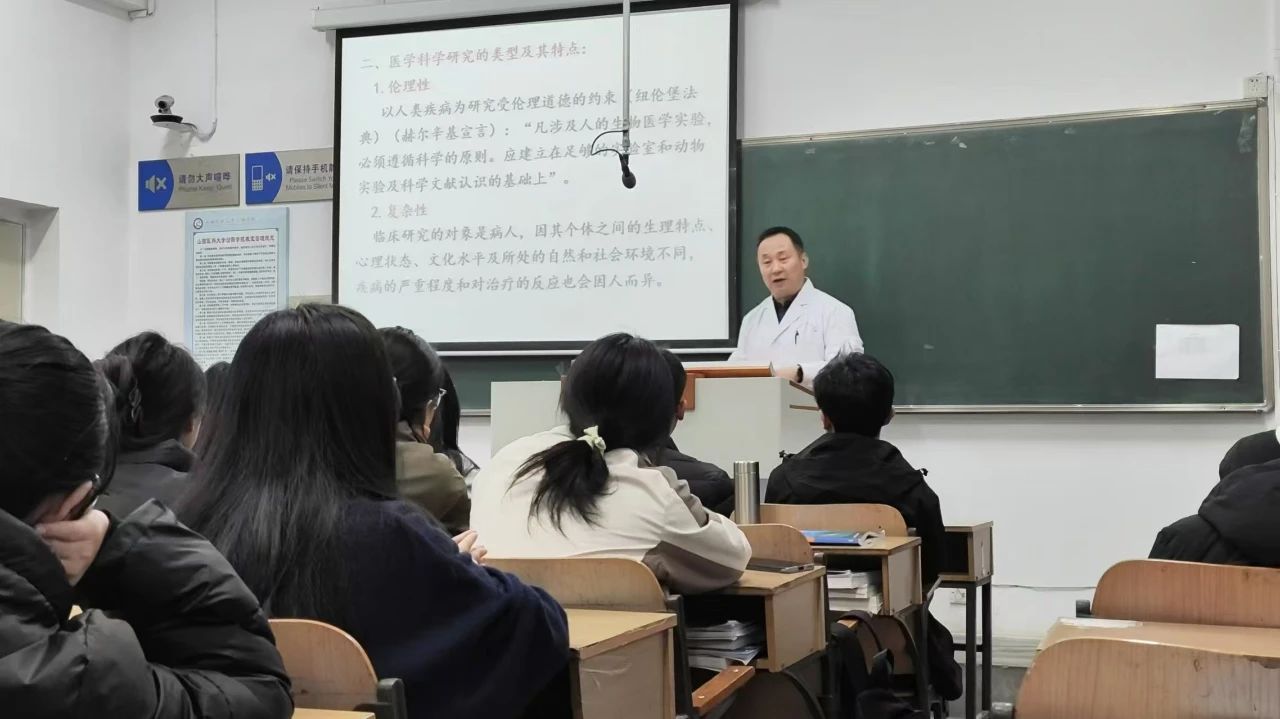 讲座伊始,吴惠文教授对医学科学研究进行了宏观阐释,从科研任务、科研类型、研究方法、研究特点等方面进行了深入浅出的讲解,并指出“好奇心”是做好科学研究的重要因素,同时他还强调,作为本科生要正确处理好学习与科研的关系。吴教授还结合相关案例和亲身实践,从如何选题、如何进行实验设计以及如何实现成果转化等方面,生动诠释了开展医学科学研究的全过程。