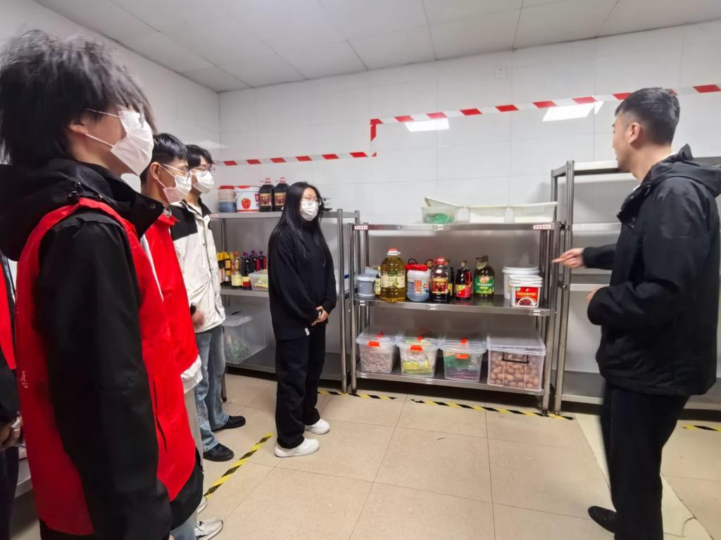 学生会权益部的学生代表在遵守安全卫生的前提条件(佩戴口罩)下由学校餐厅经理引导参观,食堂设有专业的集中清洗区,采用紫外线消毒,保障餐具卫生;洗菜配菜区确保食材初步清洁;烹饪区设备齐全,符合安全标准,设有留样区以追溯食材问题。整体环境整洁,员工着装规范,操作认真。透明化的操作流程无不体现着食堂工作人员对于食品安全的负责与重视。从食材处理到烹饪过程都严格遵守卫生安全标准,让同学们对后厨的认识更加深刻。