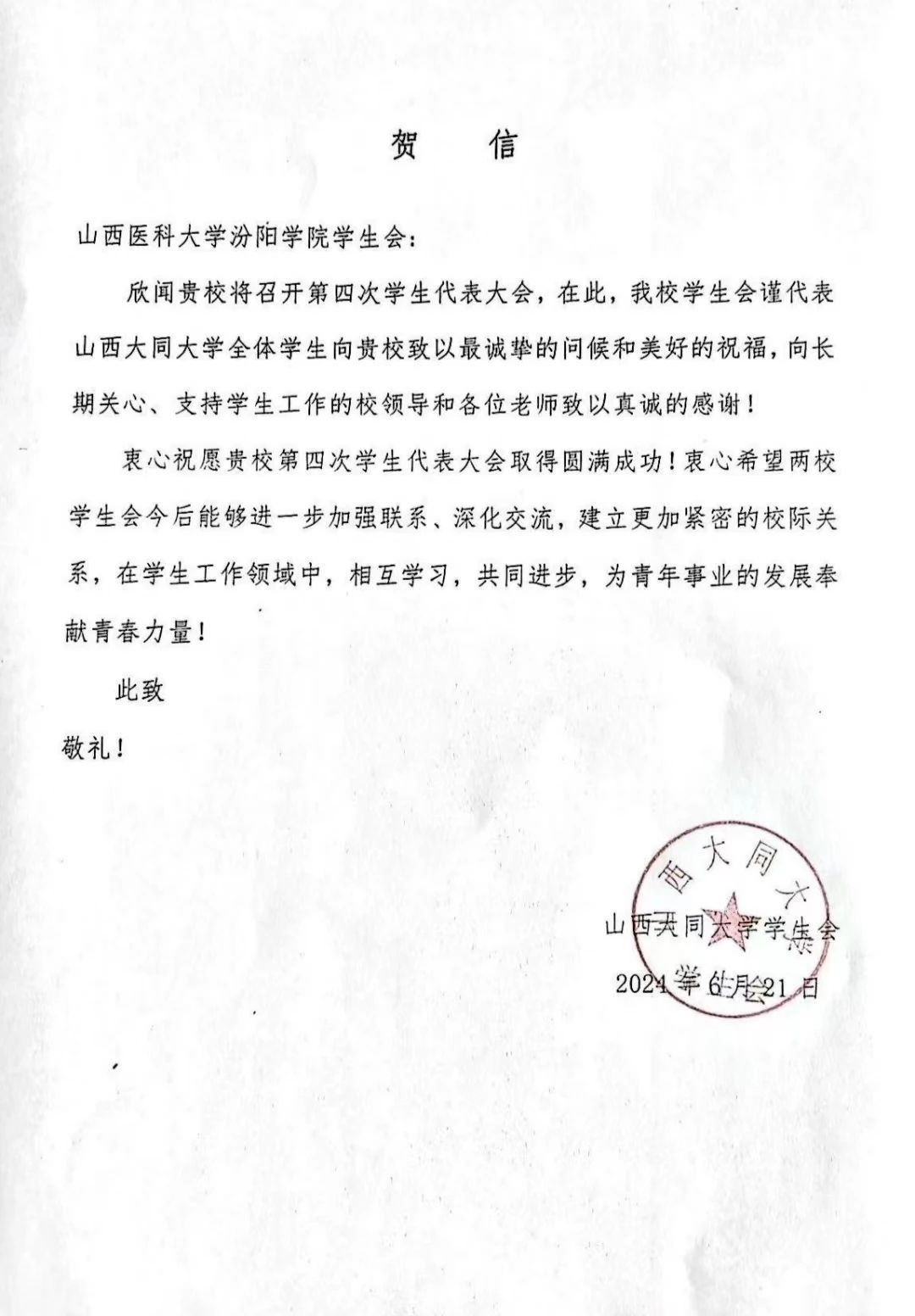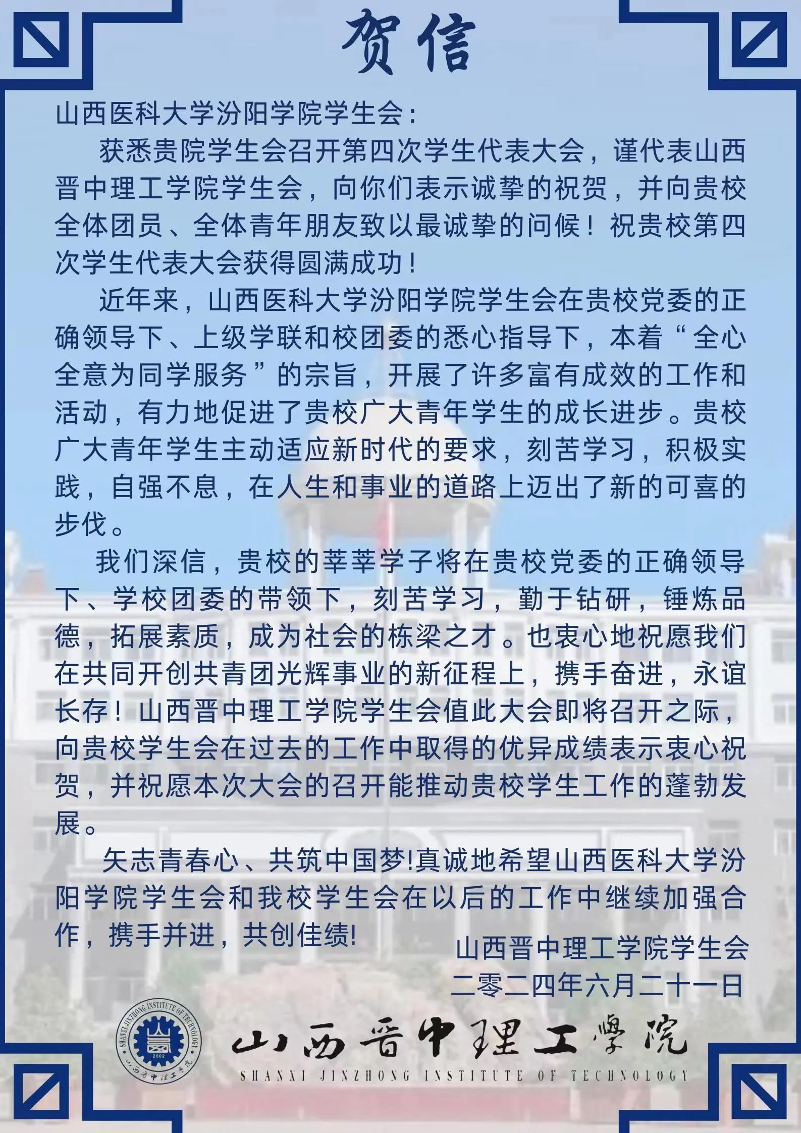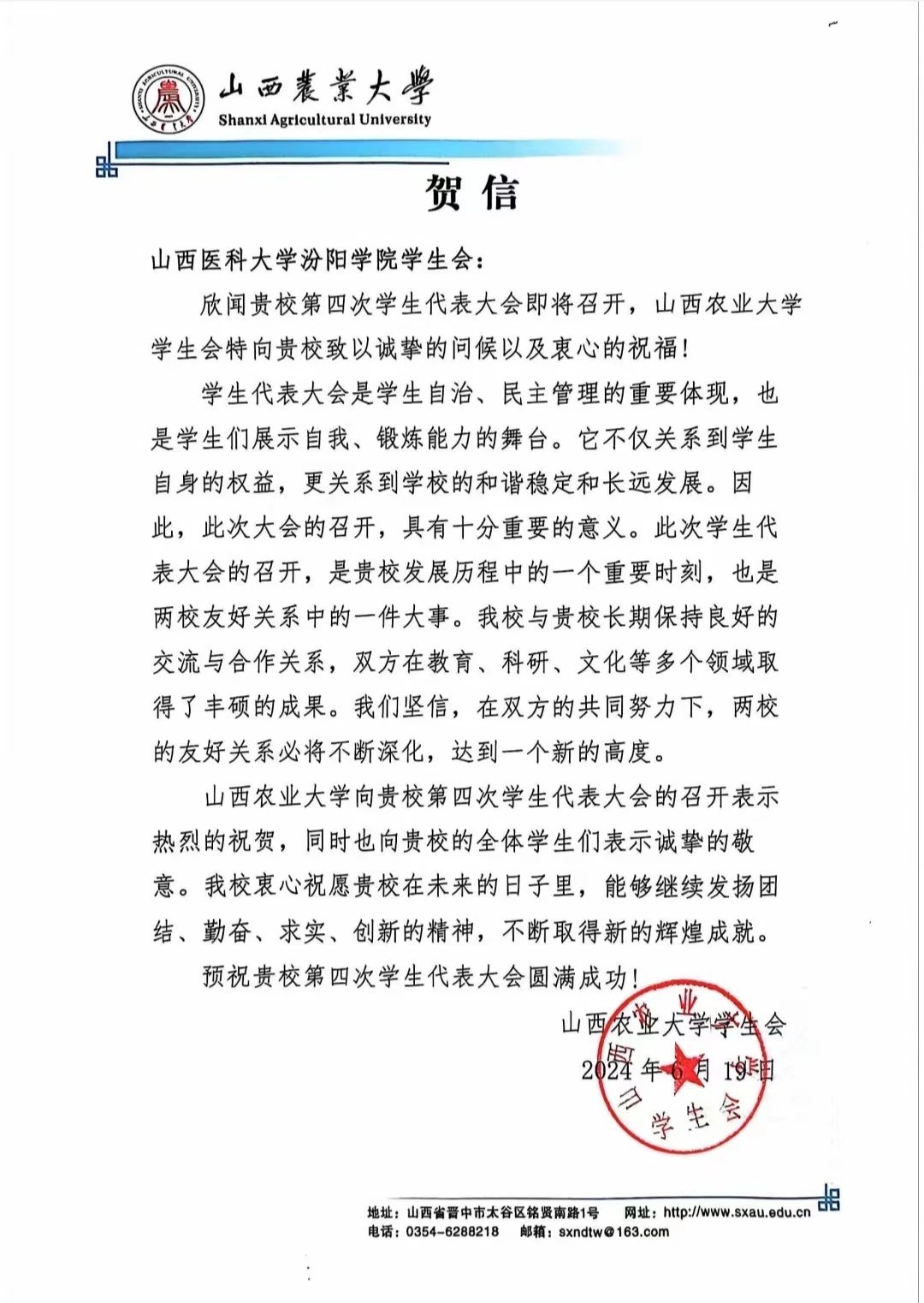 召开此次学代会的诚挚祝福