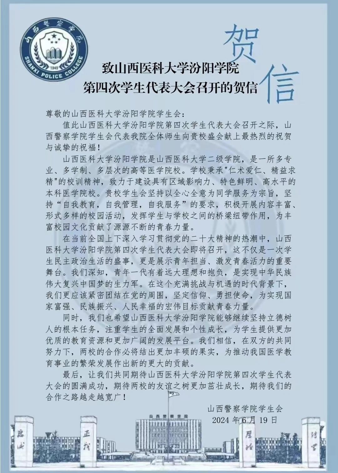 让我们一起来看看各学校的贺信吧