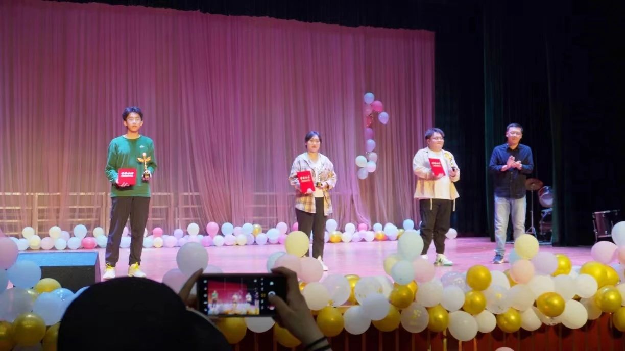经过激烈的比拼,新一届校园十佳歌手产生,四位评委老师分别为她们颁奖。