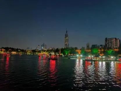 夜色笼罩下的玄武湖,华灯初上,五彩斑斓,灯火阑珊处尽显绚丽辉煌,美到极致。