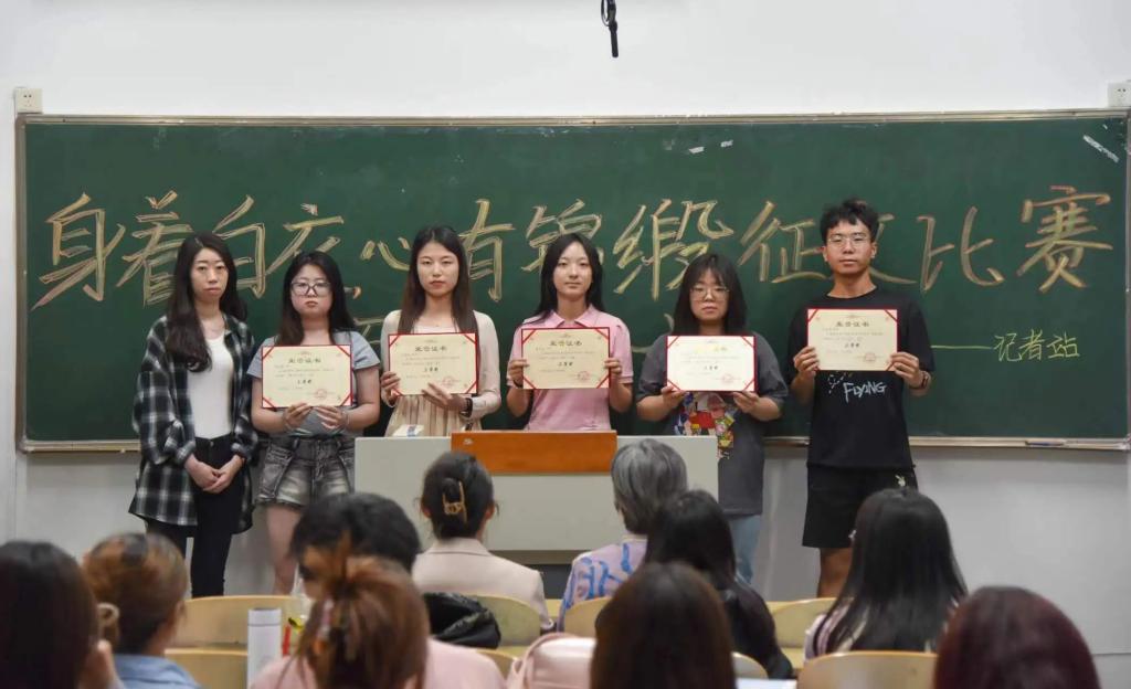 5月10日晚,校记者站在聚成楼12教举行了本次征文比赛的颁奖仪式。记者站联系领导、党委宣传部副部长双永青,记者站指导老师武霞和刘慧姣出席了颁奖仪式。获奖学子和记者站全体成员参加了颁奖仪式。