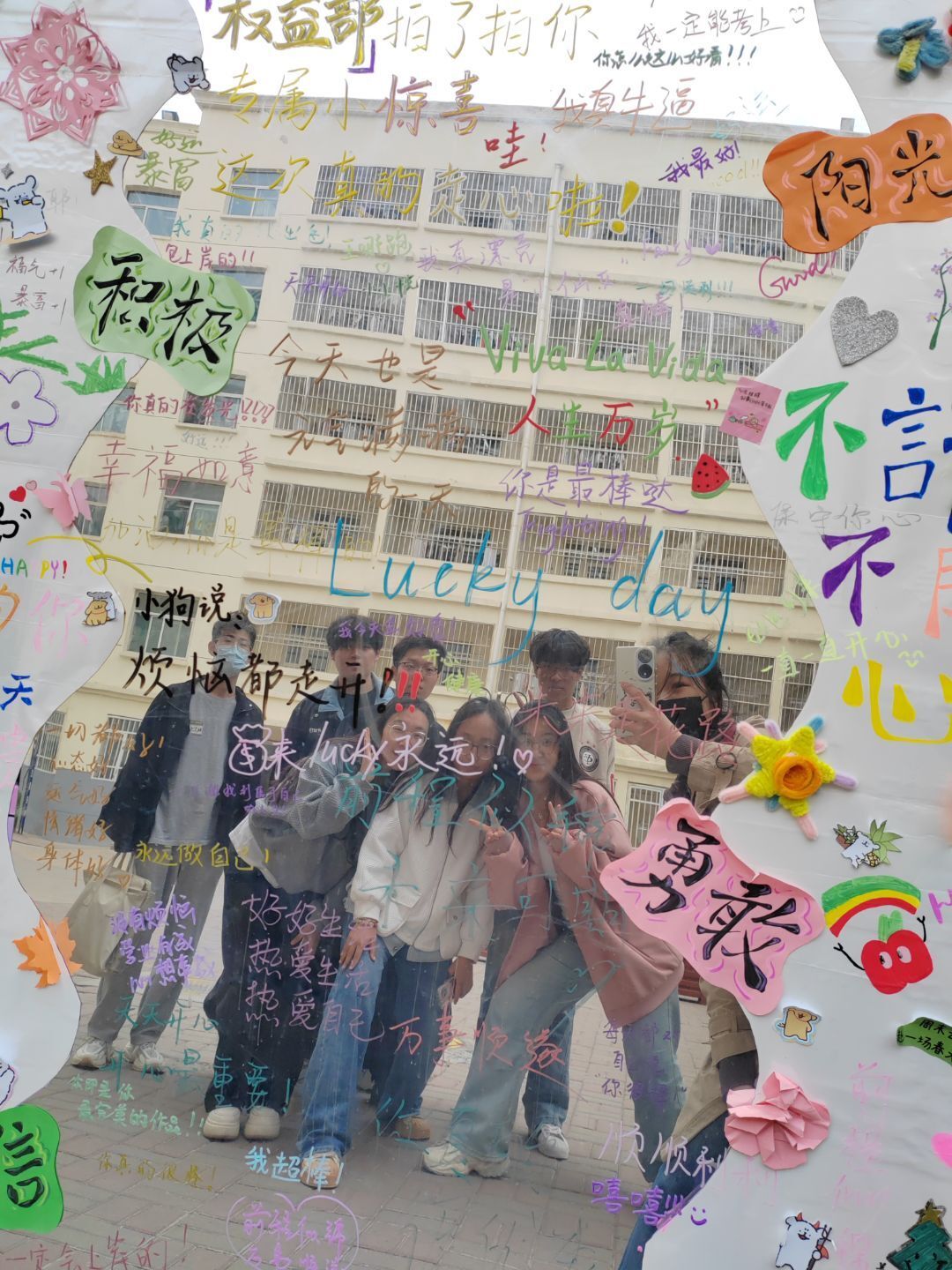独具匠心的“夸夸镜”吸引了不少同学驻足拍照打卡,鼓励来往的同学们大胆写下对自己的夸赞以及美好祝愿。一句句内心深处的夸赞,不仅是对自己的肯定,也感染着周围的每一个人,充满了正能量!