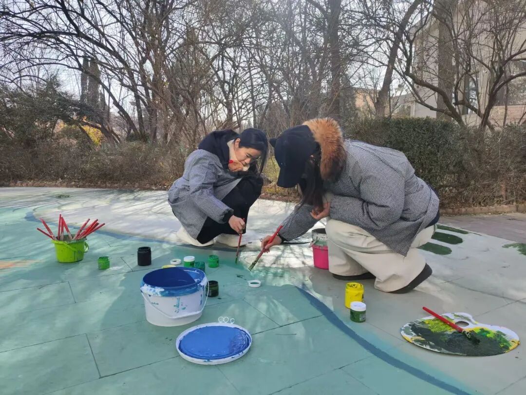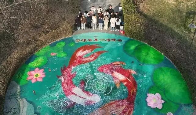 一群医学生以地为纸、以彩为墨,合力勾勒出锦鲤跃波的画卷,“鲤想成真,锦榜题名”的字样,既是美育与校园文化的交融,更是对考研学长学姐最真挚的祝福。在医学学习的硬核日常里,美育是温柔的调剂,让他们在解剖图与公式之外,感知生命之美、协作之美;校园文化则是成长的沃土,让这份美育实践成为医学生青春里独特的印记。