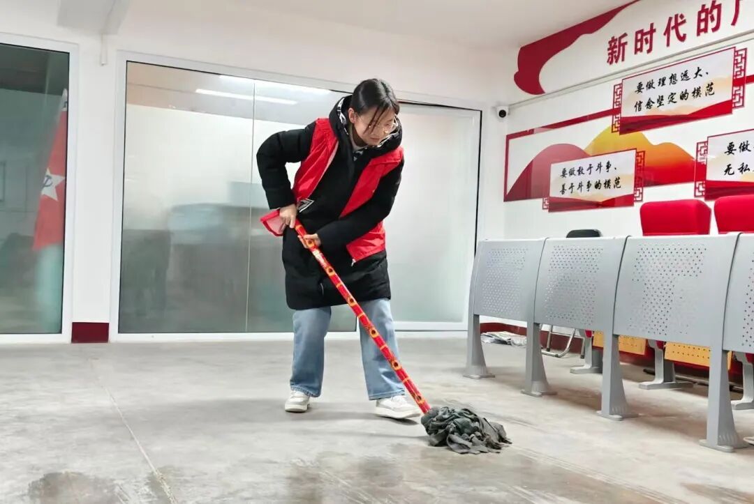 “净我所能 美你所见”活动中,志愿者对学校部分环境进行了彻底的打扫。汾阳校区主要对大学生一站式服务中心和文体中心进行了打扫。这场行动不仅让环境更加整洁,更在协作中凝聚团队力量,在劳动中强化责任担当,让“互助进步”的志愿精神从口号变成看得见的整洁与美好,也让每一位参与者读懂:平凡行动里藏着最动人的公益力量。