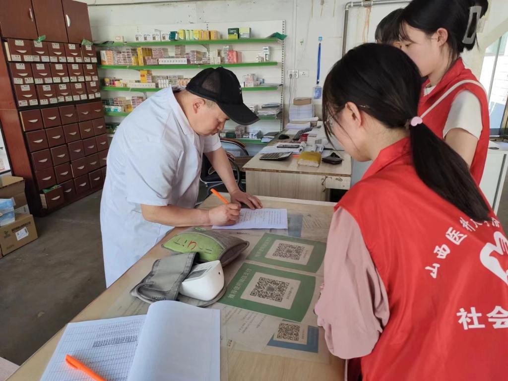 7月8日,实践队宣传组的成员们在村委会广播站用通俗易懂的语言向村民们进行知识宣讲并分发知识手册。其中宣讲内容包括:习近平新时代中国特色社会主义思想和党的二十大精神、乡村振兴与脱贫攻坚的成果、反诈骗、反赌博、反毒品、反邪教、用火及用电安全、beat365招生政策等。当日,队员们走进王村卫生所,了解乡村卫生所的日常工作。王村卫生所作为榆次区新型农村合作医疗的定点医疗机构,积极落实新型农村合作医疗制度和新型农村合作医疗管理办法,不断满足基层医疗需求。在卫生所负责人的带领下,队员们积极宣传常见病、慢性病的防治,健康保健小知识,认真地教村民如何量血压、测血糖。