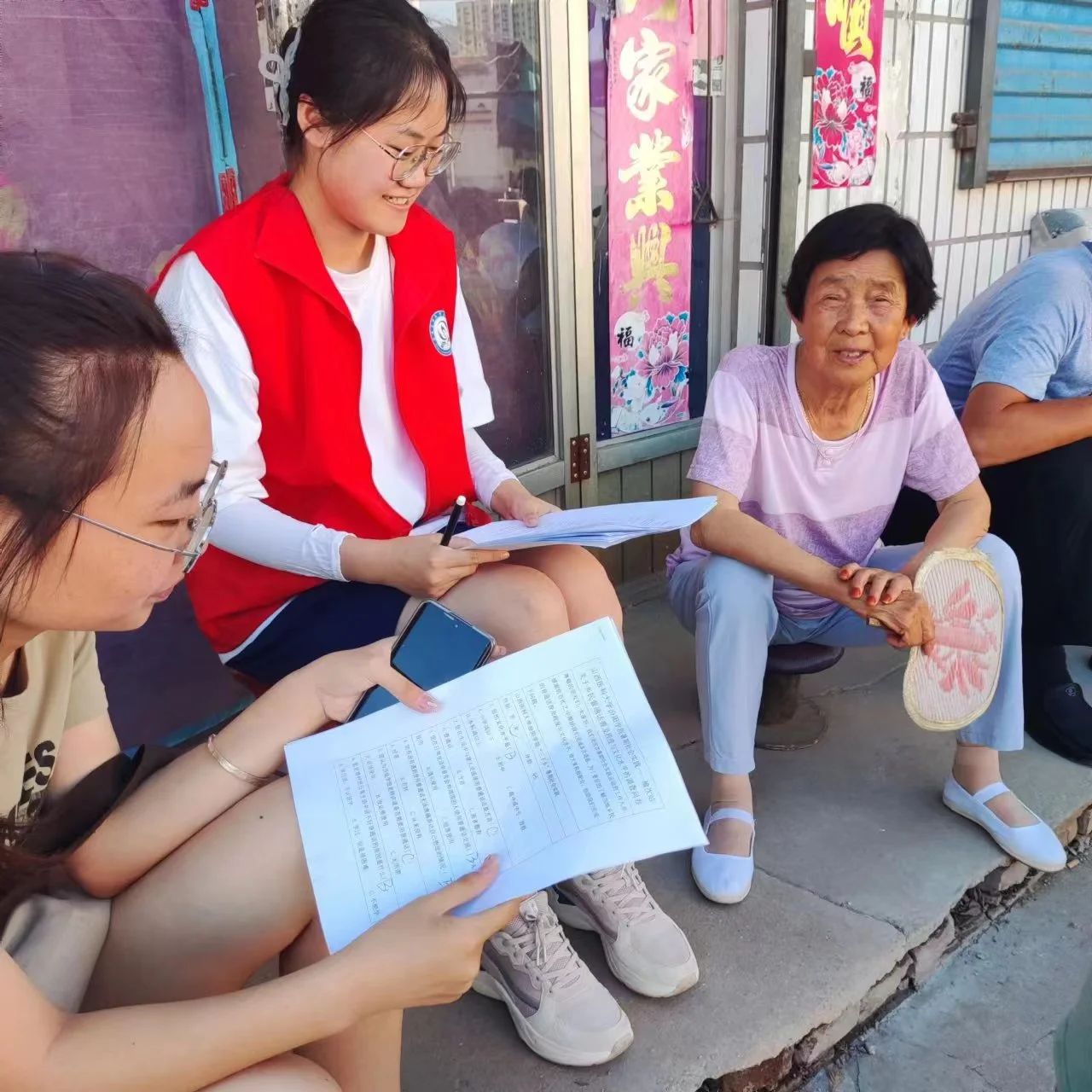 7月9日,队员们兵分两路进行了入户调研,通过与村民们深入交谈、填写调查问卷,调查了解当地教育水平情况、教育基础设施建设情况、医疗机构基本情况、国家医疗政策落实以及基本医疗保障等情况。通过入户调研这一方式,队员们不仅了解了村情,还加深了与村民之间的感情。