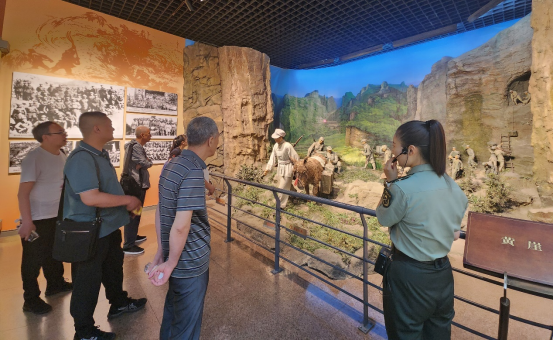 在八路军太行纪念馆,党员们怀着崇敬的心情,依次参观了各个展厅认真聆听了讲解员对八路军抗战历史的讲解,通过一幅幅珍贵的历史图片、一件件饱含沧桑的实物以及生动详实的裸眼3D历史重现视频,仿佛穿越时空,回到了那段战火纷飞的岁月,深刻感受到了八路军将士和根据地人民不怕牺牲、英勇无畏的伟大抗战精神。