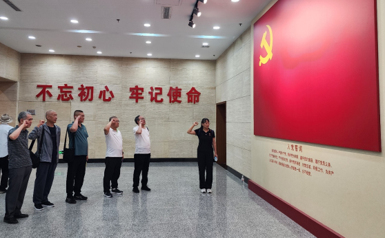 在参观过程中,党支部还组织了重温入党誓词活动。全体党员面对鲜红的党旗,庄严地举起右手,再次许下了对党忠诚、为共产主义事业奋斗终身的誓言。铿锵有力的誓言在这片红色的土地上回荡,表达了党员们不忘初心、牢记使命的坚定信念。