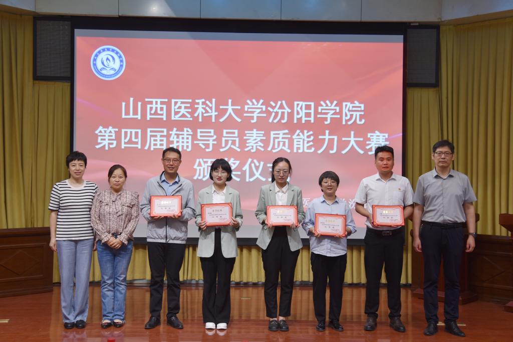 经过激烈角逐,冯佳菏获得一等奖,李晨、张楠、陈美妍获得二等奖,王鑫、姚晓媛、赵玮、李小龙、阎艳萍获得三等奖,张冠蓉、双内青、吕维倩、李丹、赵艳、龚宪芳、武明丹获得优秀奖,冯佳菏、姚晓媛、李晨分别获得基础理论考核、案例研讨、谈心谈话环节单项奖,基础医学部、护理学系、临床医学系、医学检验系、眼视光学系、卫生信息管理系获得优秀组织奖。与会领导为获奖辅导员和获奖集体颁奖。