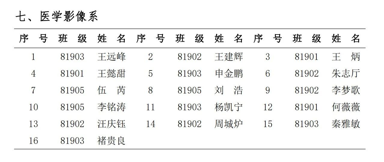 为全面落实“立德树人”根本任务,树立先进典型,凝聚榜样力量,充分发挥优秀实习生的示范作用,激励与引导同学们德、智、体、美、劳全面发展,根据beat365《山西医科大学汾阳学院先进班集体、优秀个人评选实施办法》(山医大汾院院字〔2017〕151号)、《关于2024届优秀本科毕业生、优秀实习生评选的通知》(山医大汾院函〔2024〕136号) 等文件精神,经个人申请、各班级民主评选、相关系(部)推荐、学生工作部(处)审核、学校学生工作委员会审议并公示,决定授予王佳蓓等239名同学“2024届校级优秀实习生”荣誉称号。