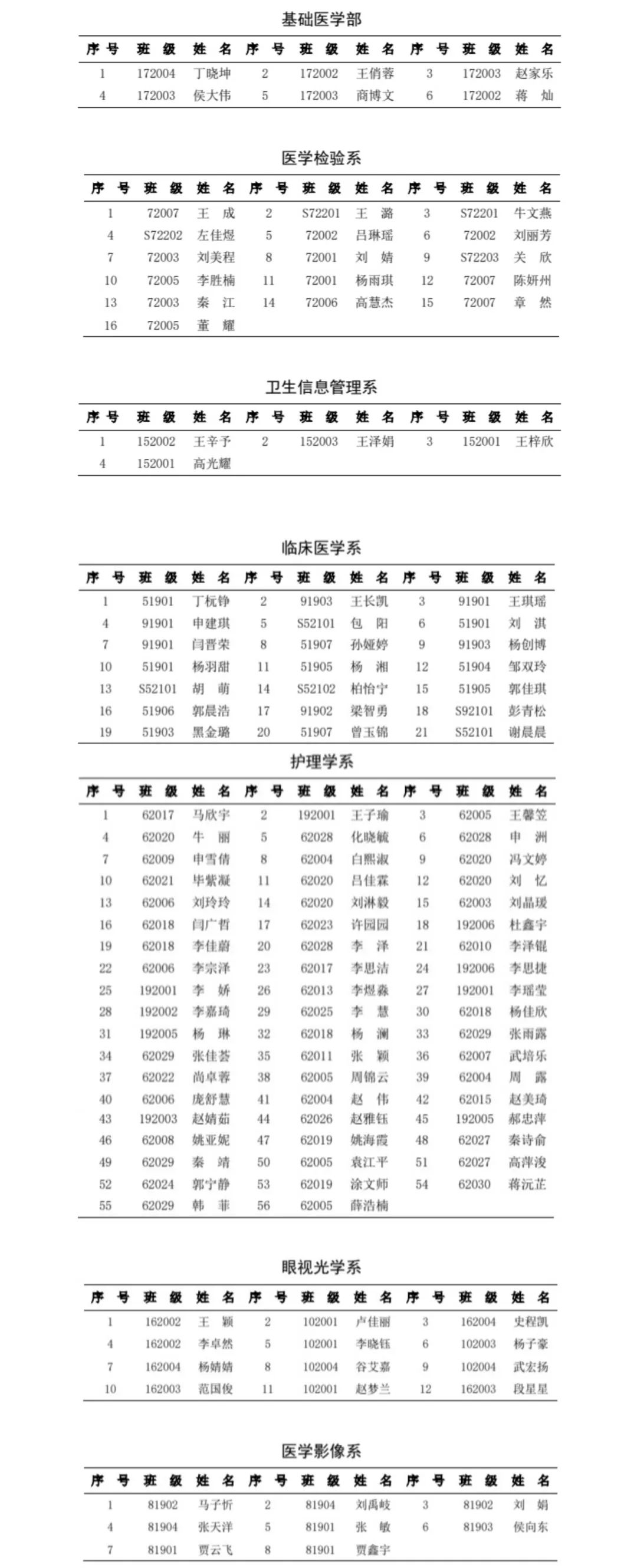 为全面落实“立德树人”根本任务,树立先进典型,凝聚榜样力量,充分发挥优秀毕业生的示范作用,激励与引导同学们德、智、体、美、劳全面发展,根据beat365《山西医科大学汾阳学院先进班集体、优秀个人评选实施办法》(山医大汾院院字〔2017〕151号)、《关于2024届优秀本科毕业生、优秀实习生评选的通知》(山医大汾院函〔2024〕136号) 等文件精神,经学校相关工作委员会及领导小组审议、公示并经校党委、行政决定,评选丁晓坤等123名同学为“优秀本科毕业生”。