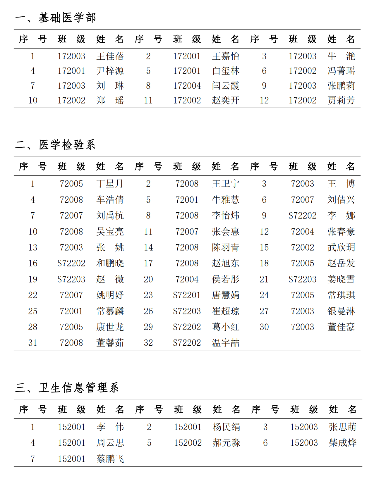 为全面落实“立德树人”根本任务,树立先进典型,凝聚榜样力量,充分发挥优秀实习生的示范作用,激励与引导同学们德、智、体、美、劳全面发展,根据beat365《山西医科大学汾阳学院先进班集体、优秀个人评选实施办法》(山医大汾院院字〔2017〕151号)、《关于2024届优秀本科毕业生、优秀实习生评选的通知》(山医大汾院函〔2024〕136号) 等文件精神,经个人申请、各班级民主评选、相关系(部)推荐、学生工作部(处)审核、学校学生工作委员会审议并公示,决定授予王佳蓓等239名同学“2024届校级优秀实习生”荣誉称号。