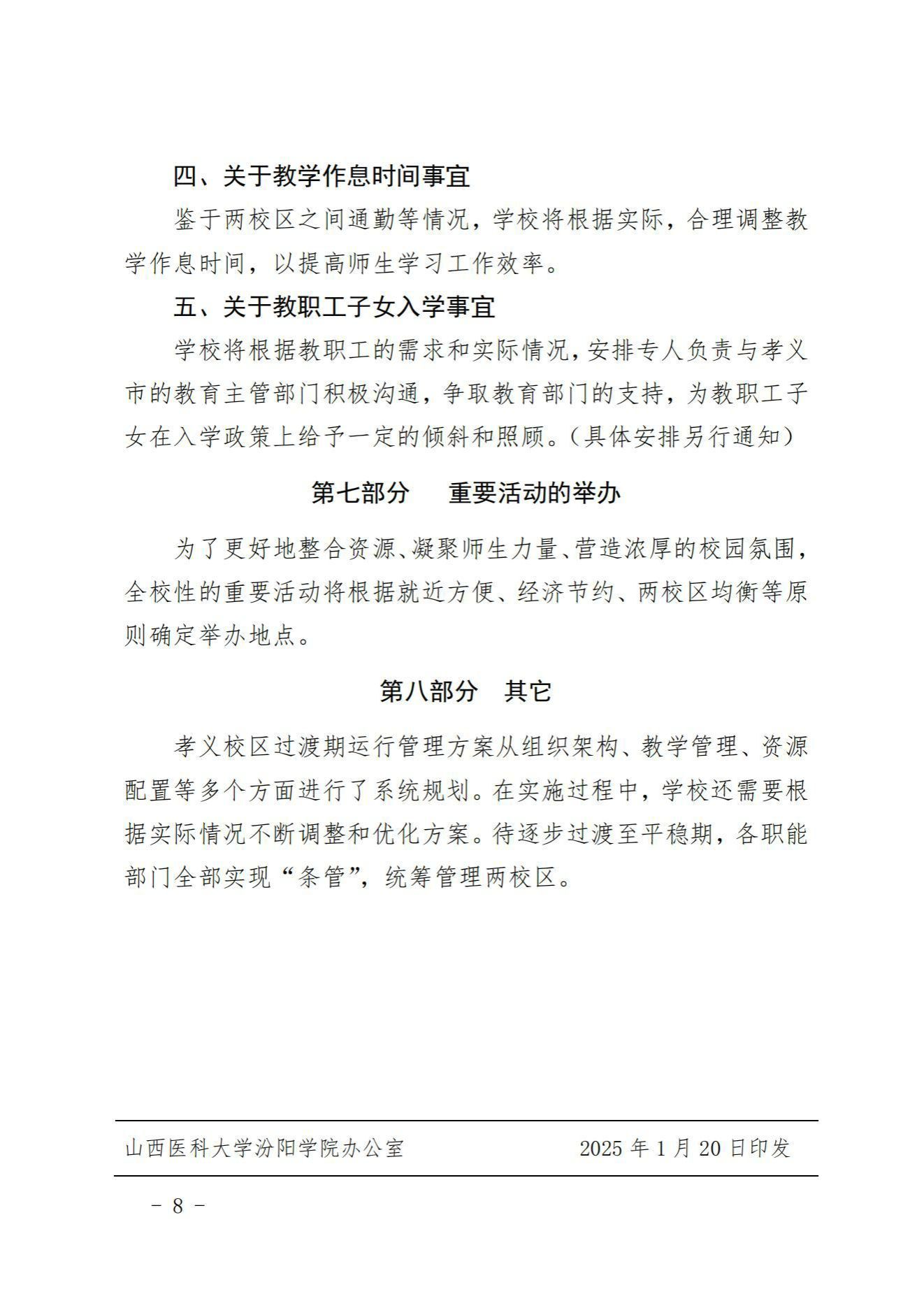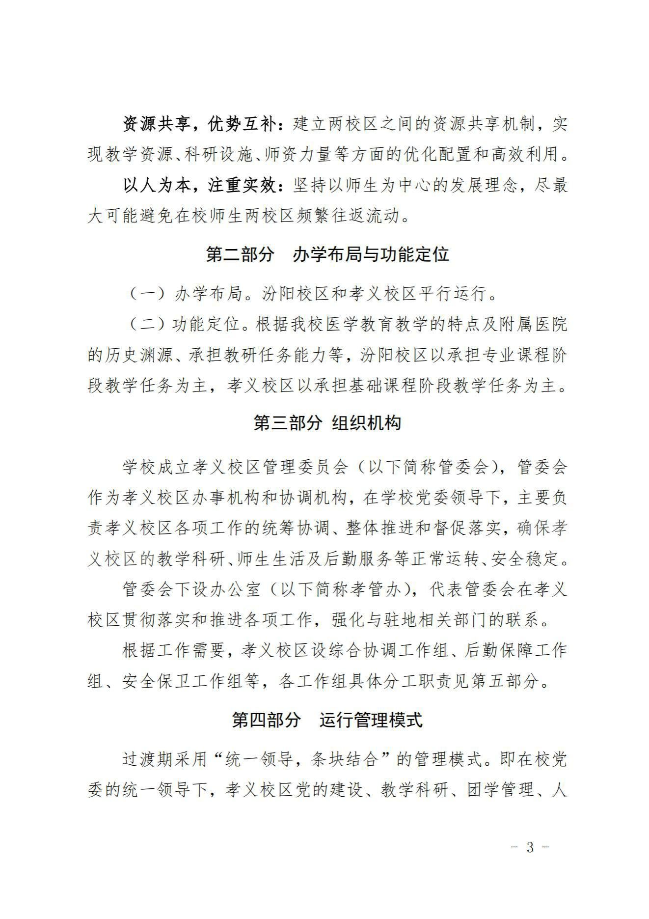 山西医科大学汾阳学院孝义校区过渡期运行管理工作方案(试行)