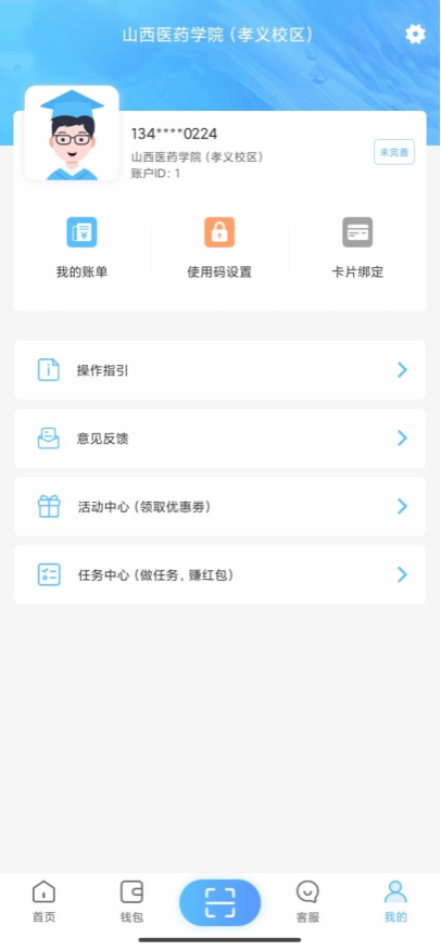 2.使用码设置:绑定后打开支付宝“趣智校园”小程序【我的】界面,点击如图【使用码设置】,领取并截屏保存我的使用码。