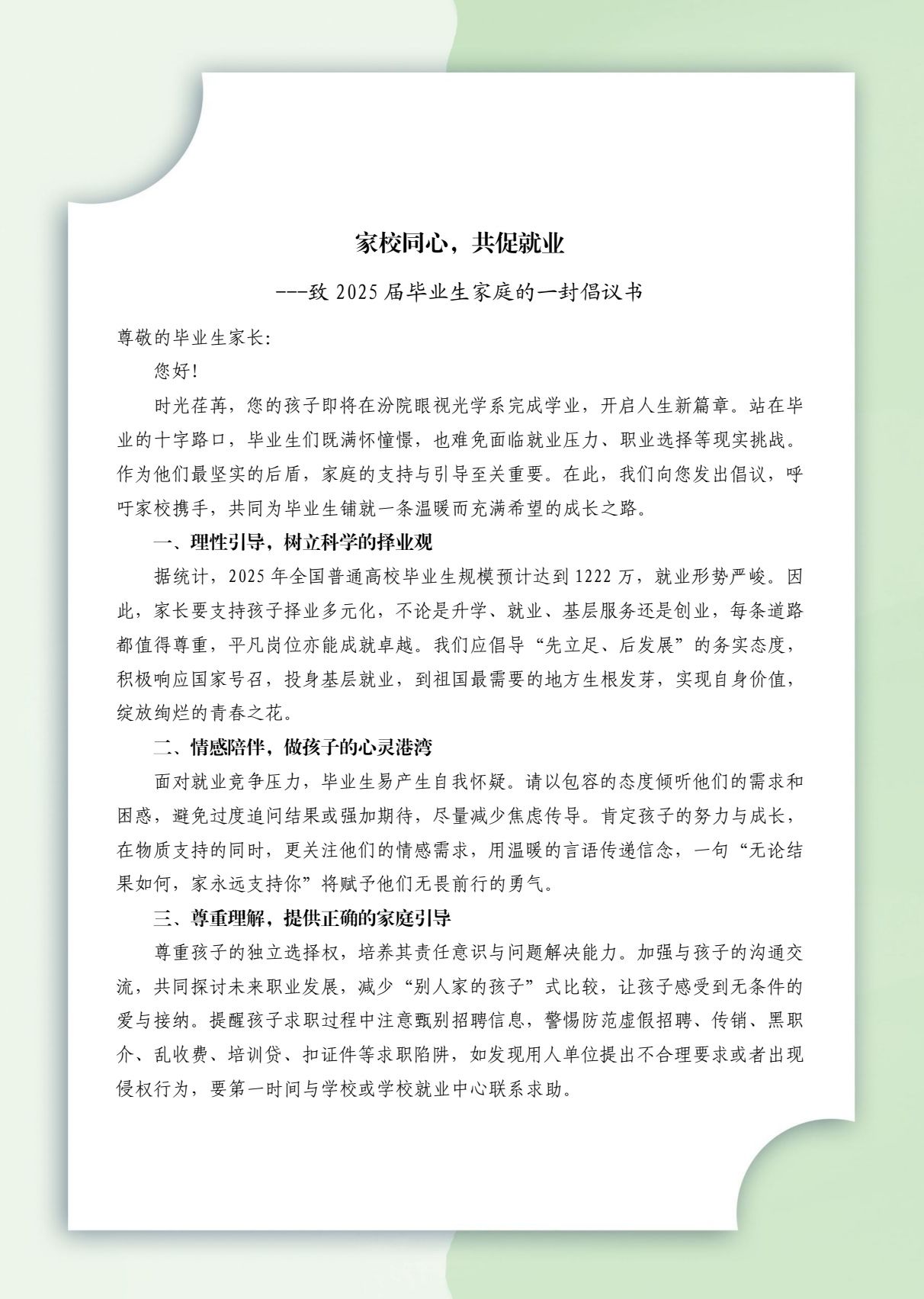 家校同心,共促就业 ---致 2025 届毕业生家庭的一封倡议书